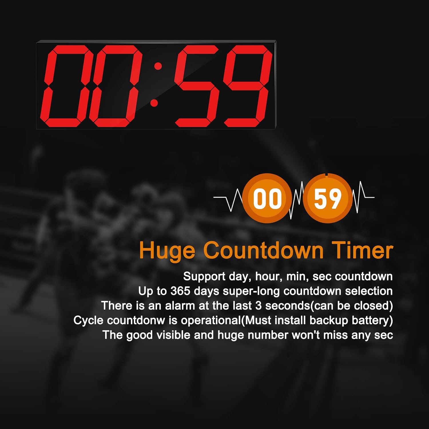 - 【Huge and Visible Countdown Clock】This countdown timer supports 364 days 23 hours 59 minutes 59 seconds ultra-long countdown time. Also can set for the minute or seconds countdown. Nobody will miss the countdown because of the 6-inch huge red numbers. We updated the user manual and took a video tutorial for countdown function, if you don’t know how to set it, just contact us to get the video tutorial and new version user manual.