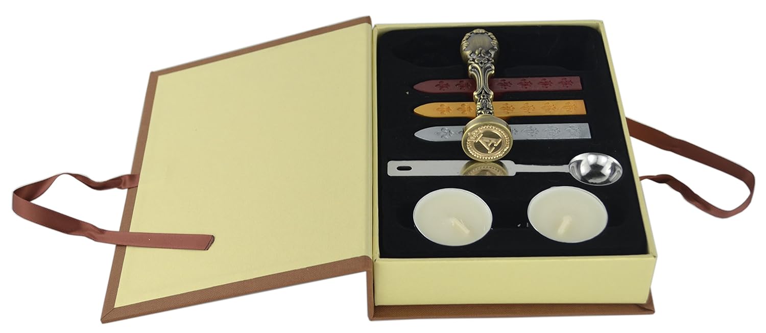 Samyo Creative Romantic Stamp Maker Classic Old-Fashioned Style Brass Color Wax Seal Sealing Stamp Vintage Antique Alphabet Initial Letter Set - (Letter A)