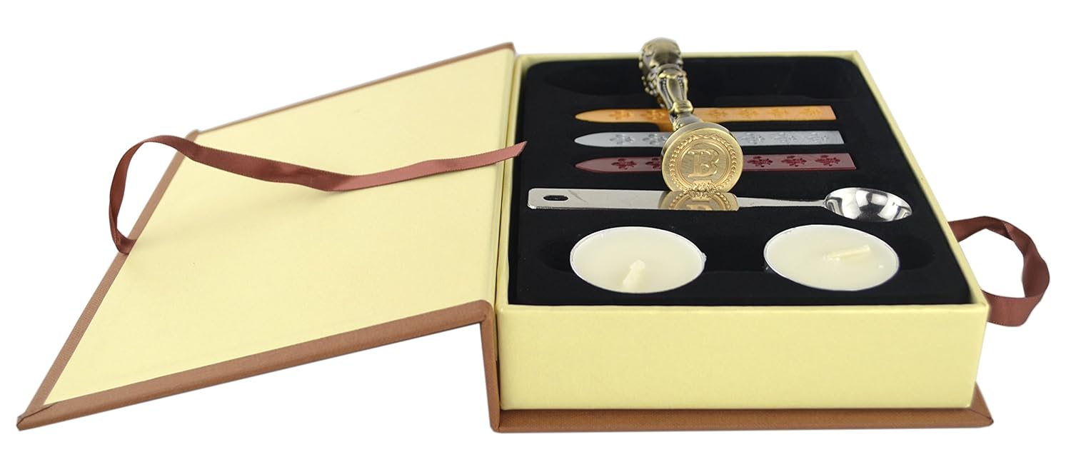 Samyo Creative Romantic Stamp Maker Classic Old-Fashioned Style Brass Color Wax Seal Sealing Stamp Vintage Antique Alphabet Initial Letter Set - (Letter B)
