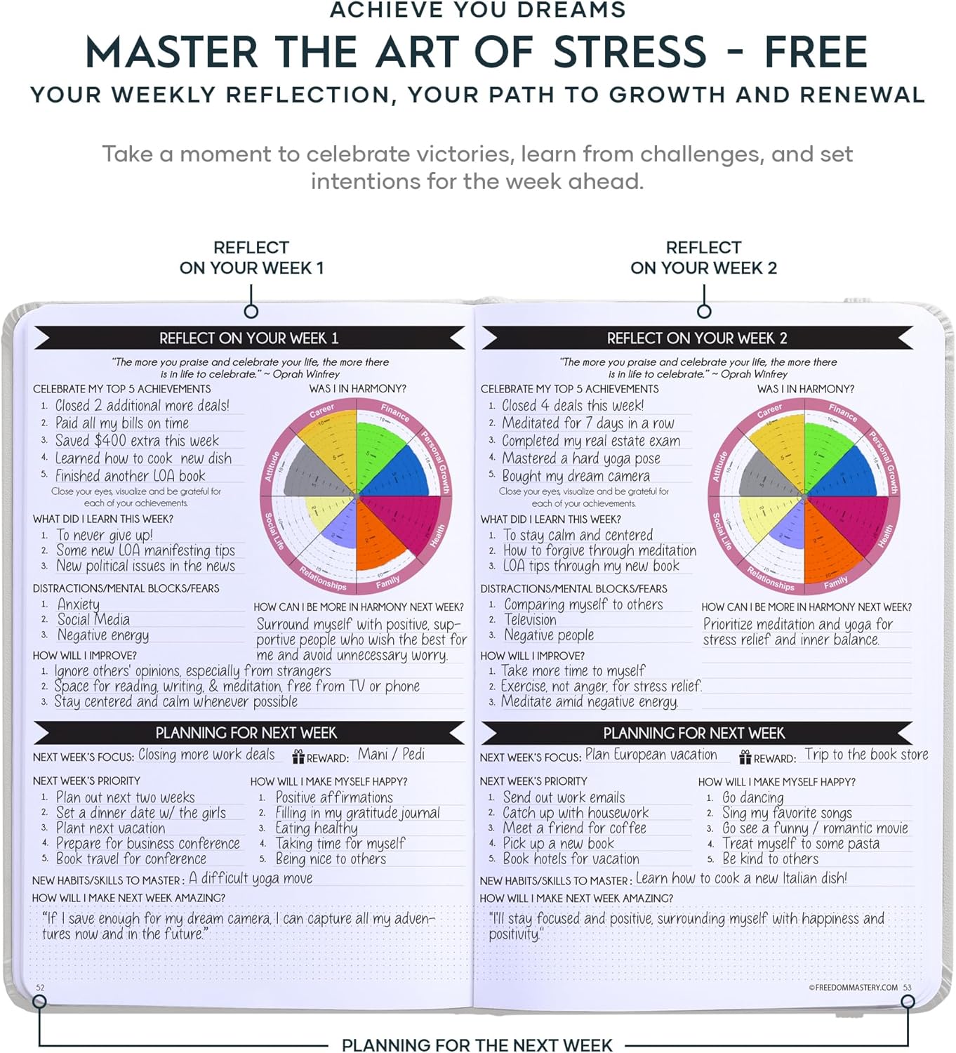 - LUXURIOUS AND TOP QUALITY - Self-care journal for women and men, perfect for entrepreneurs, professionals, college students and everyone who has burning desire to turn dreams into reality! FREE VIDEO MINI-COURSE: You will learn 10-min morning routine used by the most successful people to 10-fold your productivity, focus, happiness & passion! You will master setting goals & fix procrastination!