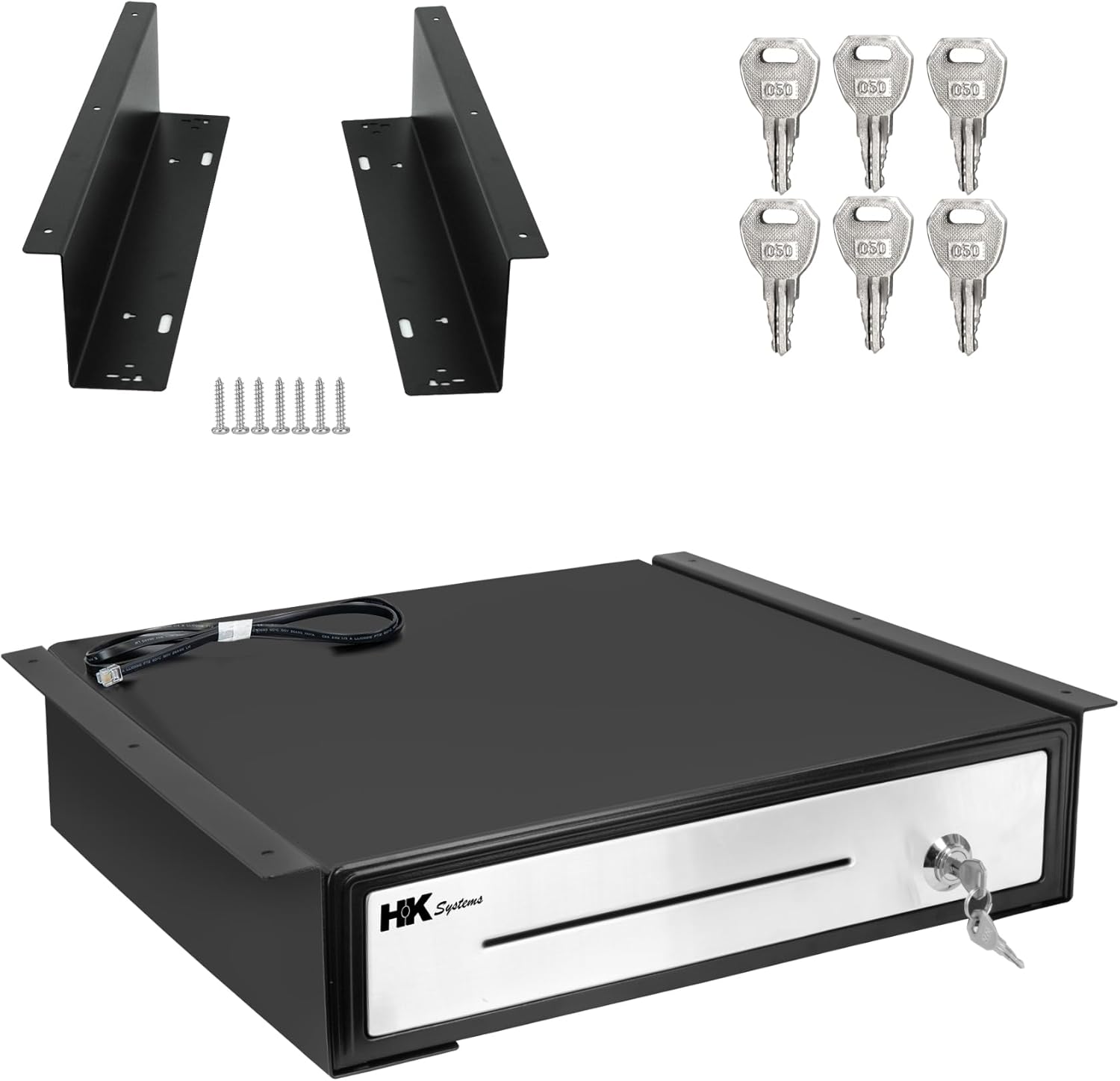HK SYSTEMS 16" "Stainless Steel" Front Heavy Duty Black POS Cash Drawer with 5Bill/5Coin with Under Counter Mounting Metal Bracket