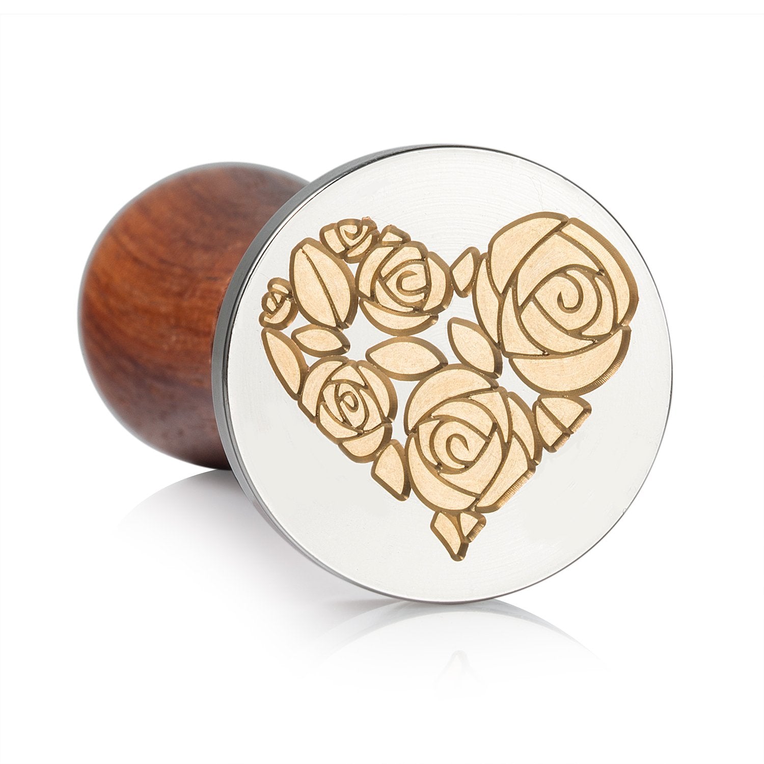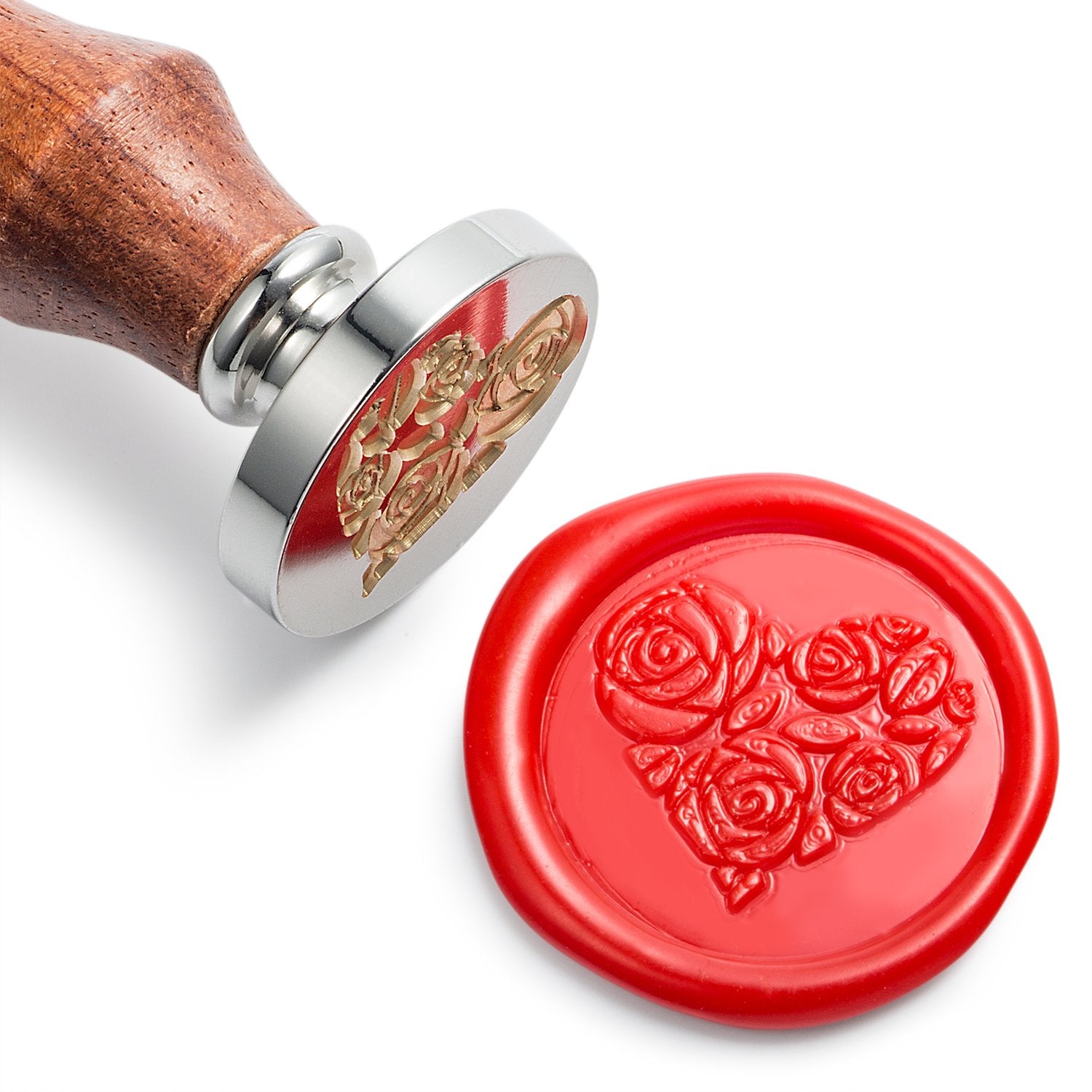 Mceal Wax Seal Stamp,Silver Brass Head with Rosewood Handle, 1.2"(30mm) Dia (Rose in Heart)