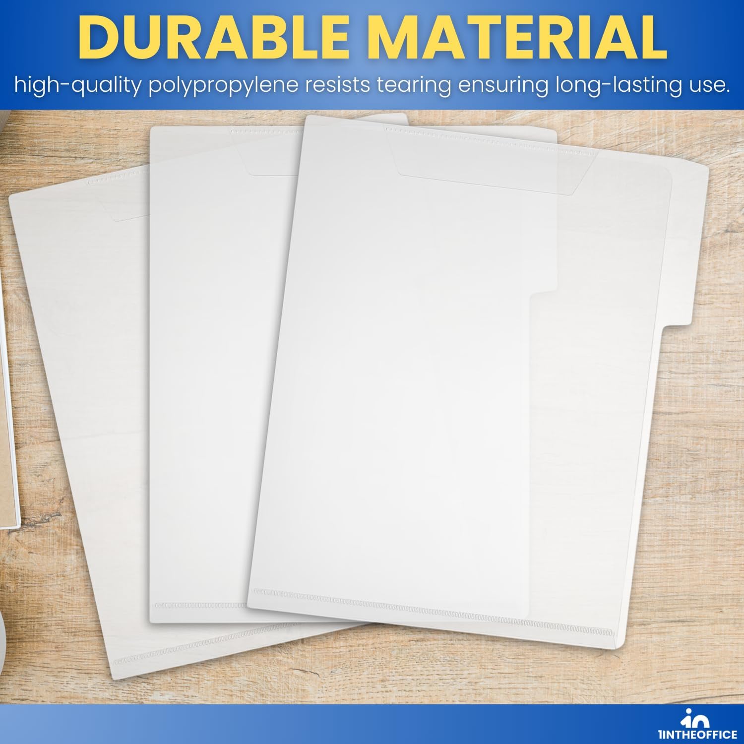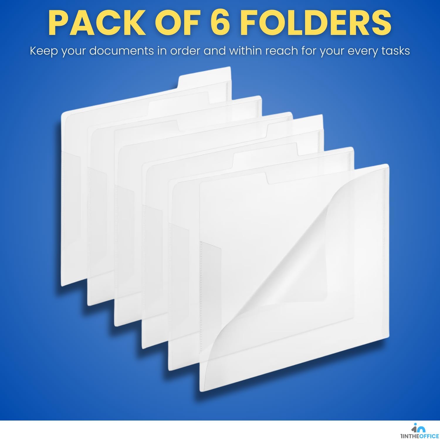 1InTheOffice Clear Plastic Folder Letter Size, Poly File Folder 3 Tab, (6 Pack)