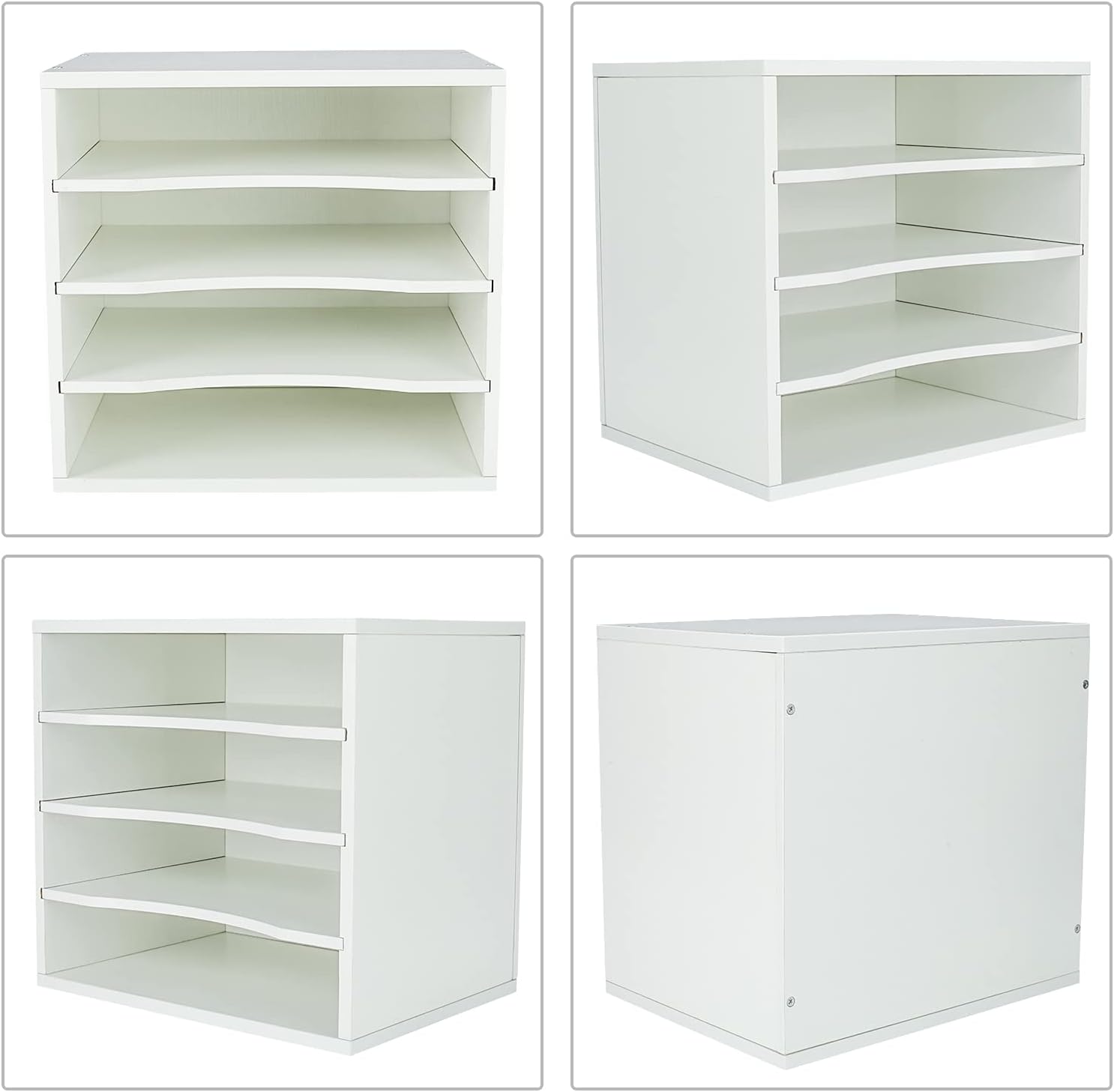 PAG Mail Sorter Organizer, Wood Countertop Literature Organizer, Office Supplies Desktop File Bill Paper Organizer for Office Home School, 4 Compartments, White