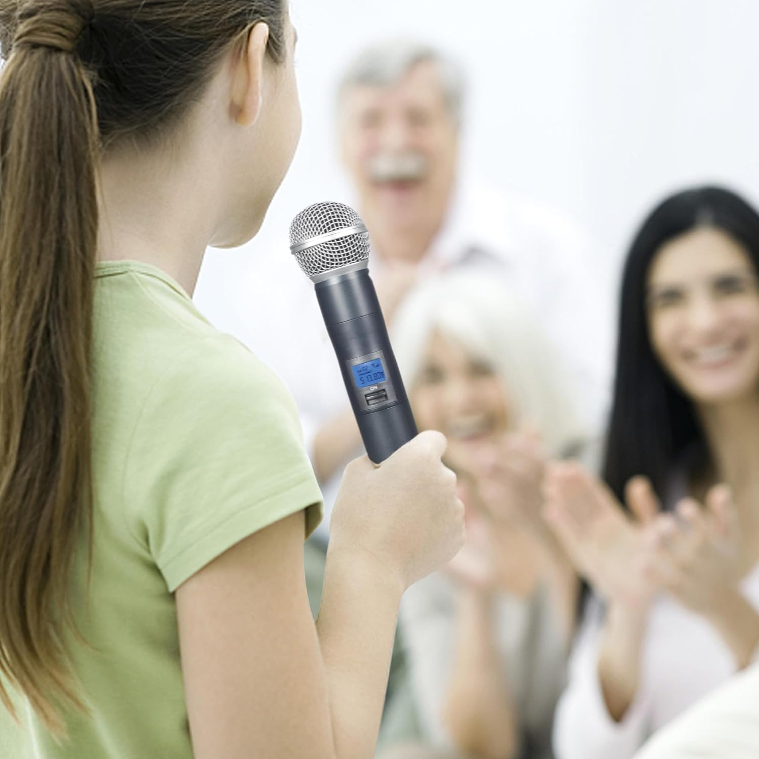 - ❤Fixed frequency, ideal for church, small DJ KJ stage, birthday wedding or family party, conference, classrooms, small karaoke night etc. Note: it don't have MUTE feature. Only support 1 mic set work at the same time. Multiple microphone sets can't work at the same place & time.