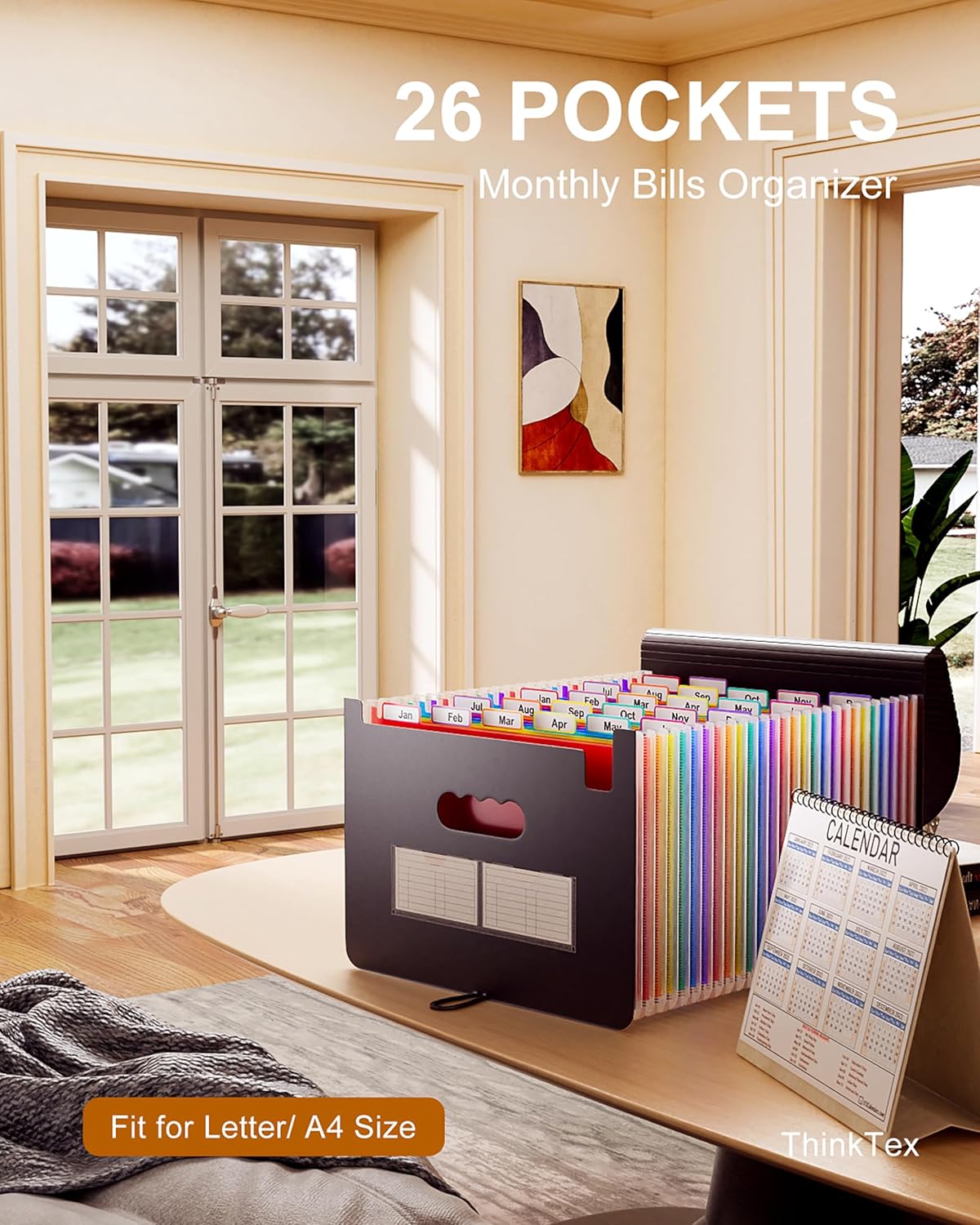 - MONTHLY BILLS ORGANIZER - ThinkTex 26 pockets accordion file organizer, top and bottom both expandable, multi-colored tabs, for letter/A4 size