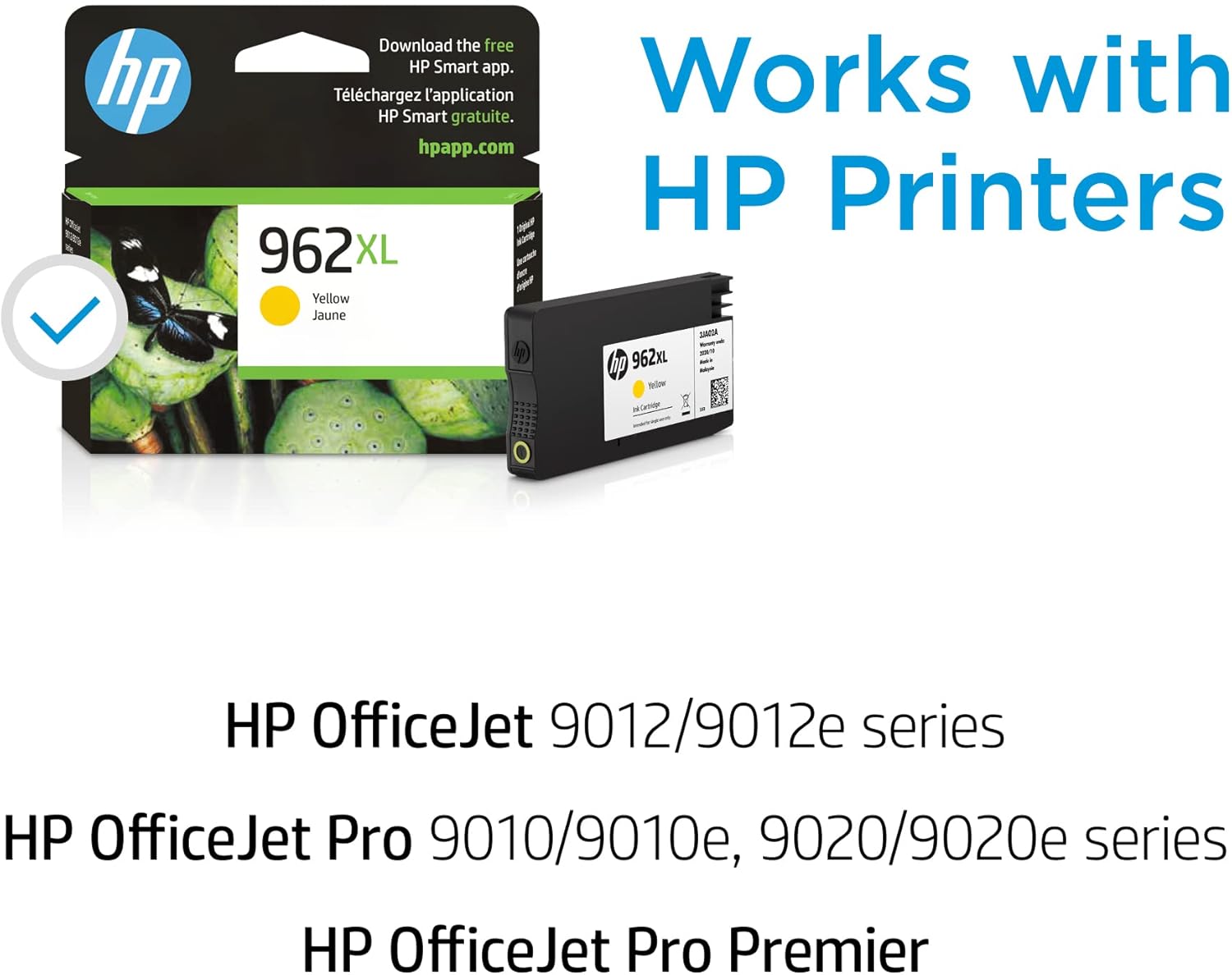 HP 962XL Yellow High-yield Ink Cartridge | Works with HP OfficeJet 9010 Series, HP OfficeJet Pro 9010, 9020 Series | Eligible for Instant Ink | 3JA02AN