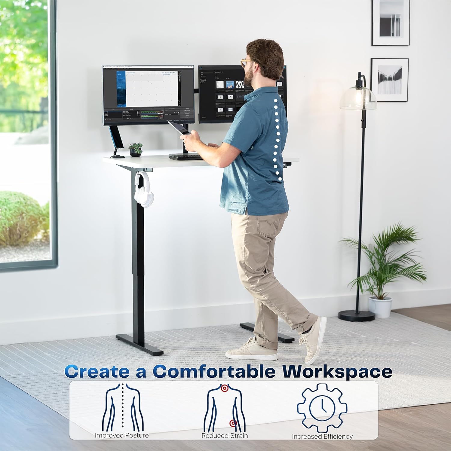 - Strong Desk Frame Support: With all-steel construction, the desk frame supports up to 176 lbs. This ensures maximum stability and sturdiness for a variety of monitor and laptop setups, giving you a solid foundation for all your equipment