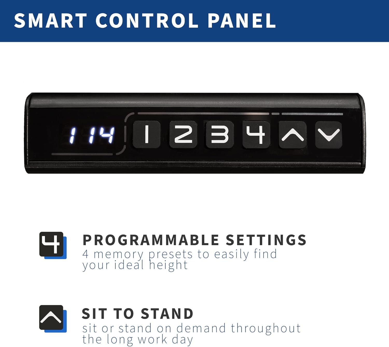 - Memory Controller: The easy-to-use push-button controller features 4 memory presets to save your desired heights. With a simple click of a button, you can say goodbye to long hours of sitting and end the day feeling energized and refreshed