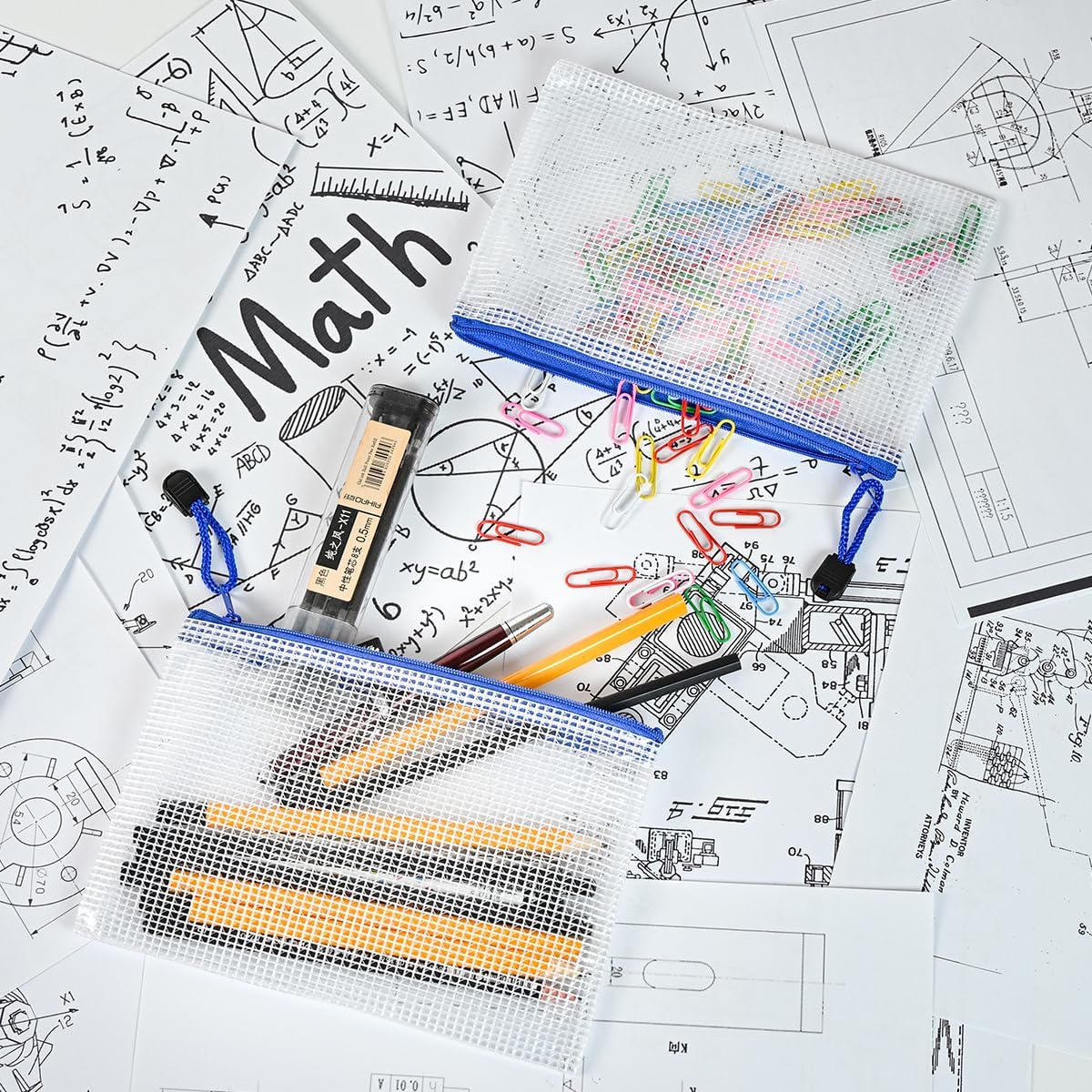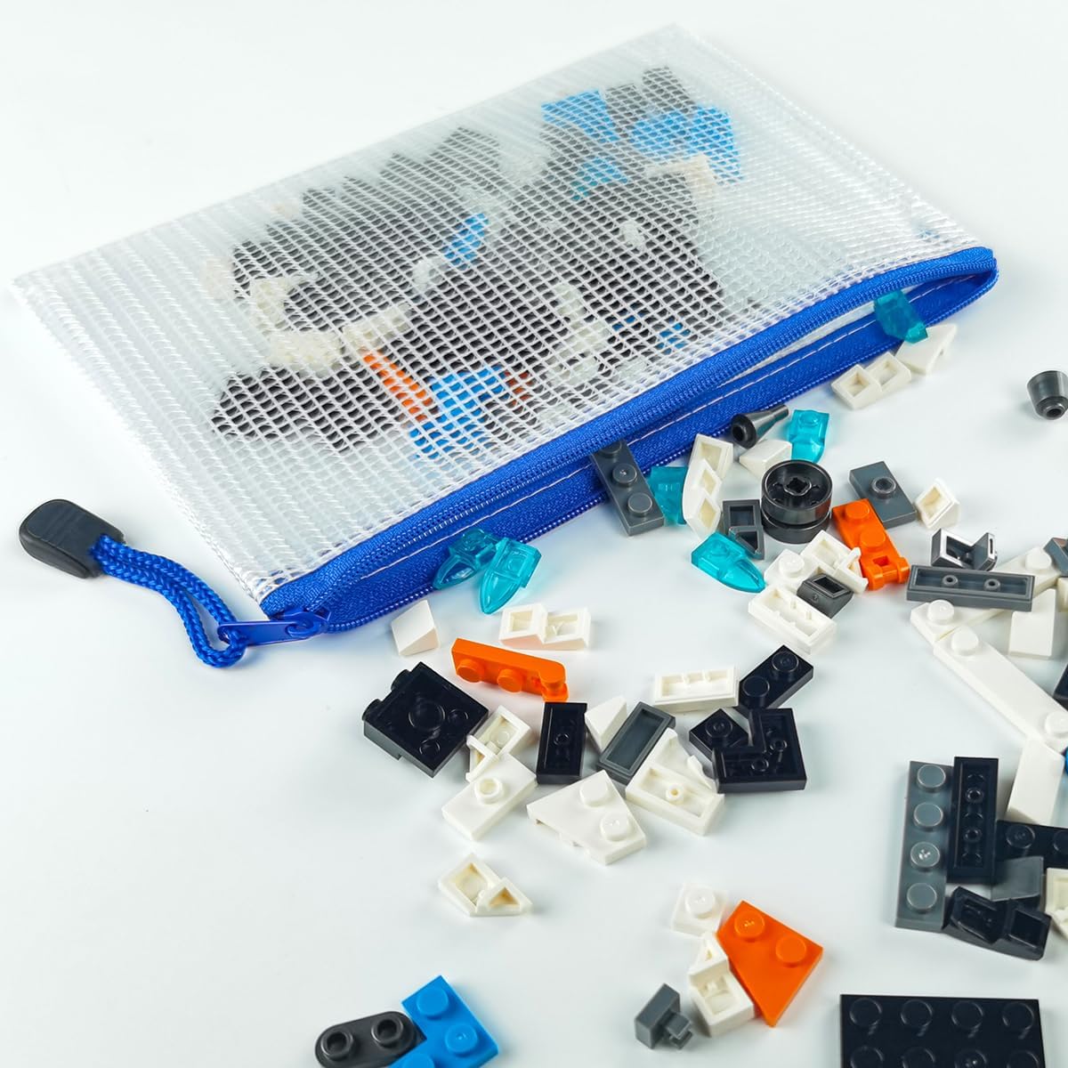 AUSTARK 10 Pcs Zipper File Bags, Waterproof Plastic Mesh Pouch for Office School, Board Game Storage Bags (B6 Size 7.6''x5.3'', White and Blue)