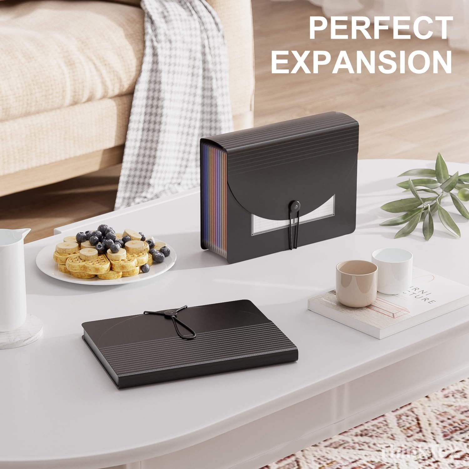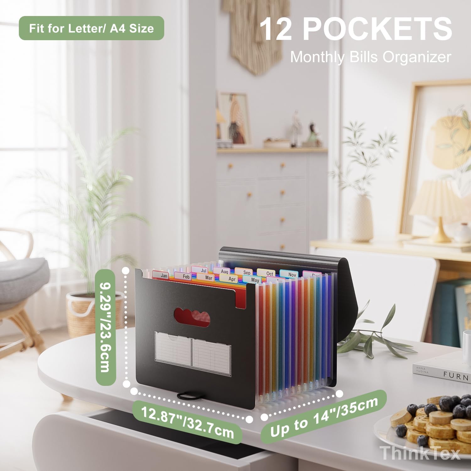 - MONTHLY BILLS ORGANIZER - ThinkTex Portable accordion file organizer, top and bottom both expandable, 12 pockets and multi-colored tabs, for letter/A4 size