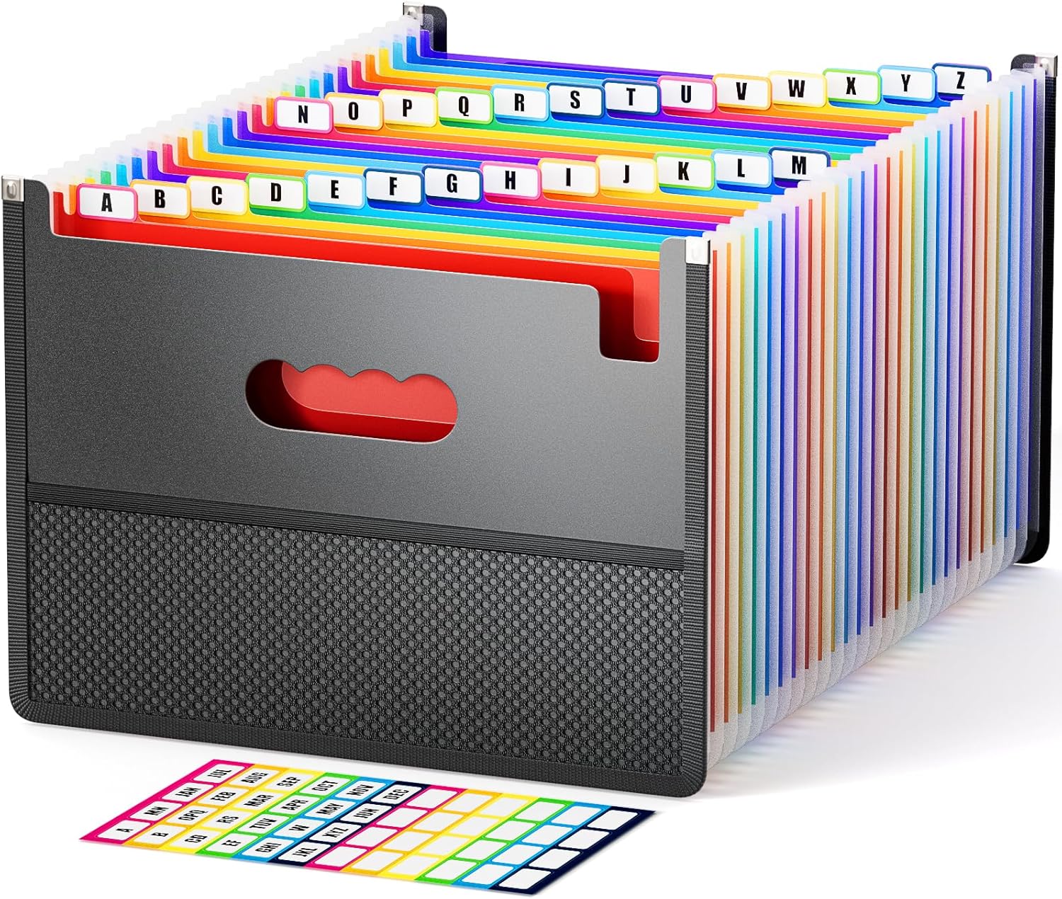 - ✅【ACCORDION LARGE CAPACITY】Expandable monthly bill organizer can be extended to 28”, stand stably. 26 pockets enough for more than two years of documents, which is durable and sturdy.