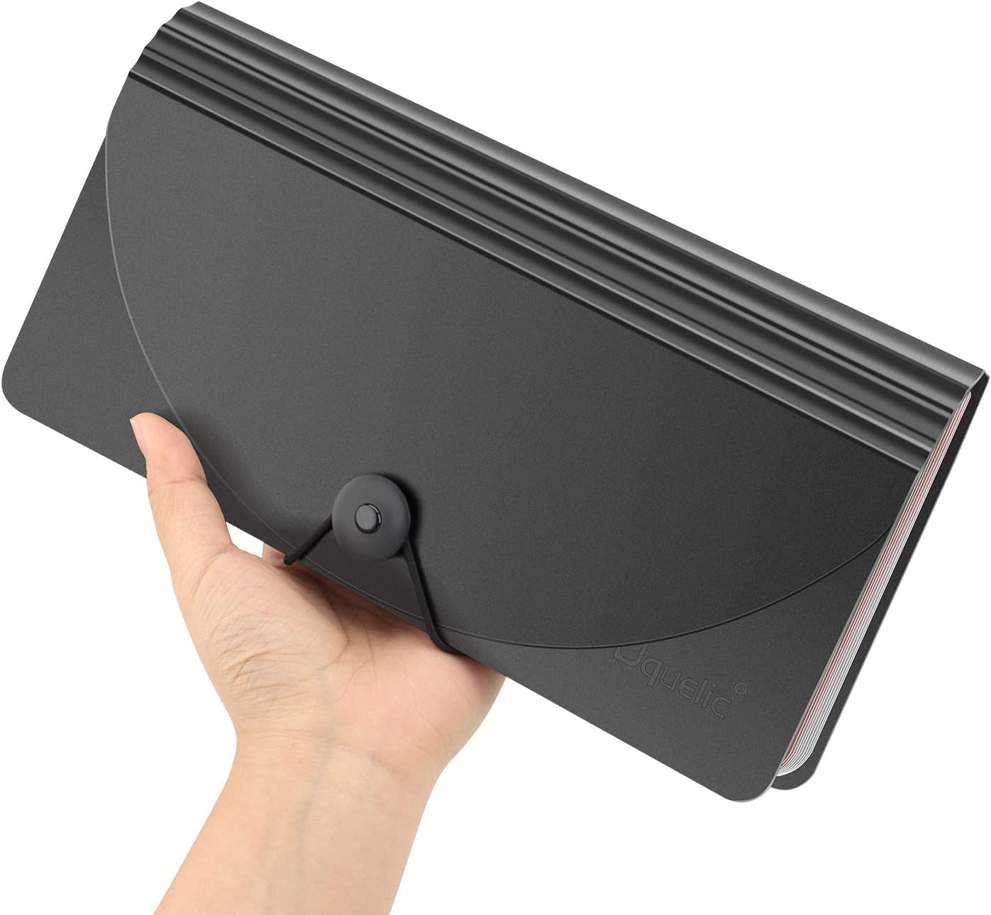 Uquelic Stand Receipt Organizer Folder - 13 Pockets Expanding Coupons Storage/Rainbow Large Capacity Bill Organizer for Desk with Label, in Case I Go Missing Binder Organizer (Black)