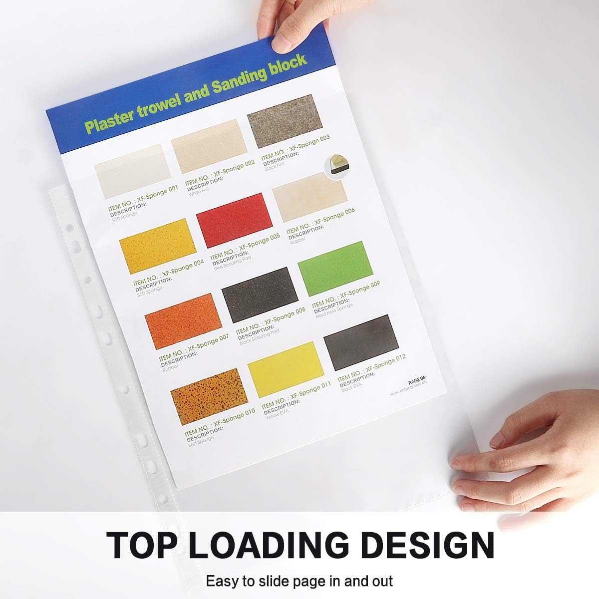 - CONVENIENT DESIGN: The top loading design make it easy to slide paper in and out. Sheet protectors with 11 holes will keep papers safe in the most ring binders, paper binders, folders or other office products.
