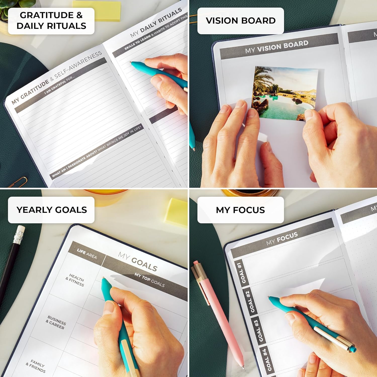- DAILY, WEEKLY & MONTHLY PLANNING / REVIEW: Use detailed daily, weekly, and monthly planning pages to plan your agenda, set goals, and track habits. The planning notebook also has weekly reviews will regularly evaluate your progress.