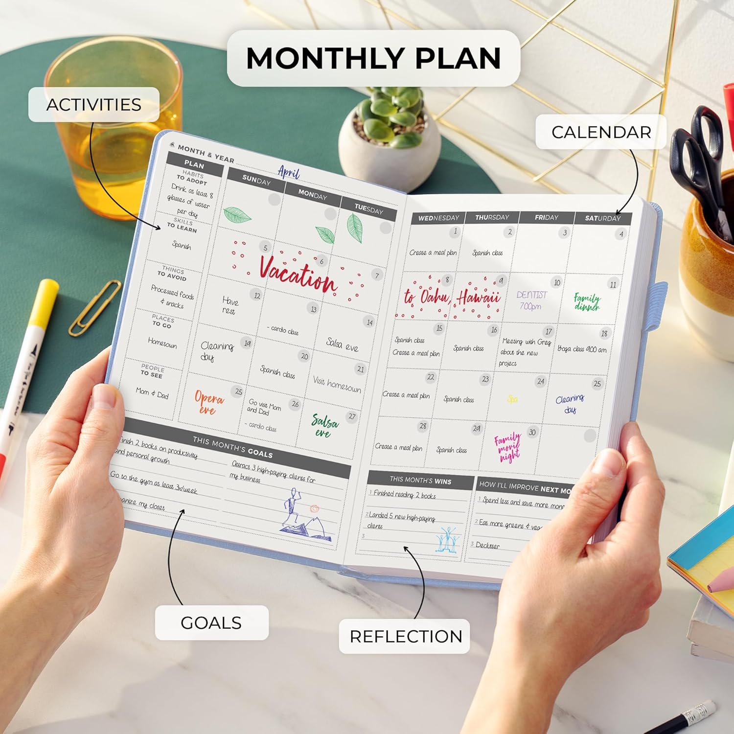 - DAILY, WEEKLY & MONTHLY PLANNING / REVIEW: Use detailed daily, weekly, and monthly planning pages to plan your agenda, set goals, and track habits. The planning notebook also has weekly reviews will regularly evaluate your progress.