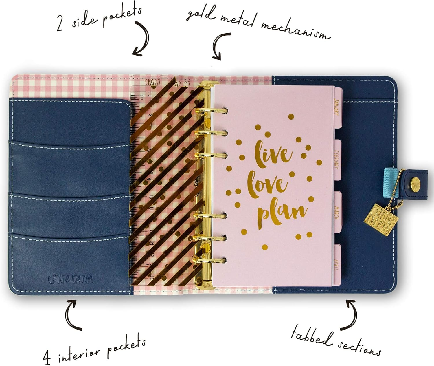 - Personal Planner: Seize the Day with Carpe Diem's stylish, faux leather personal planner; undated for your convenience so you can start planning any time of the year; premium, heavy-weight, designer inserts offer the ability to write, plan, organize and journal with no ghosting or bleed through