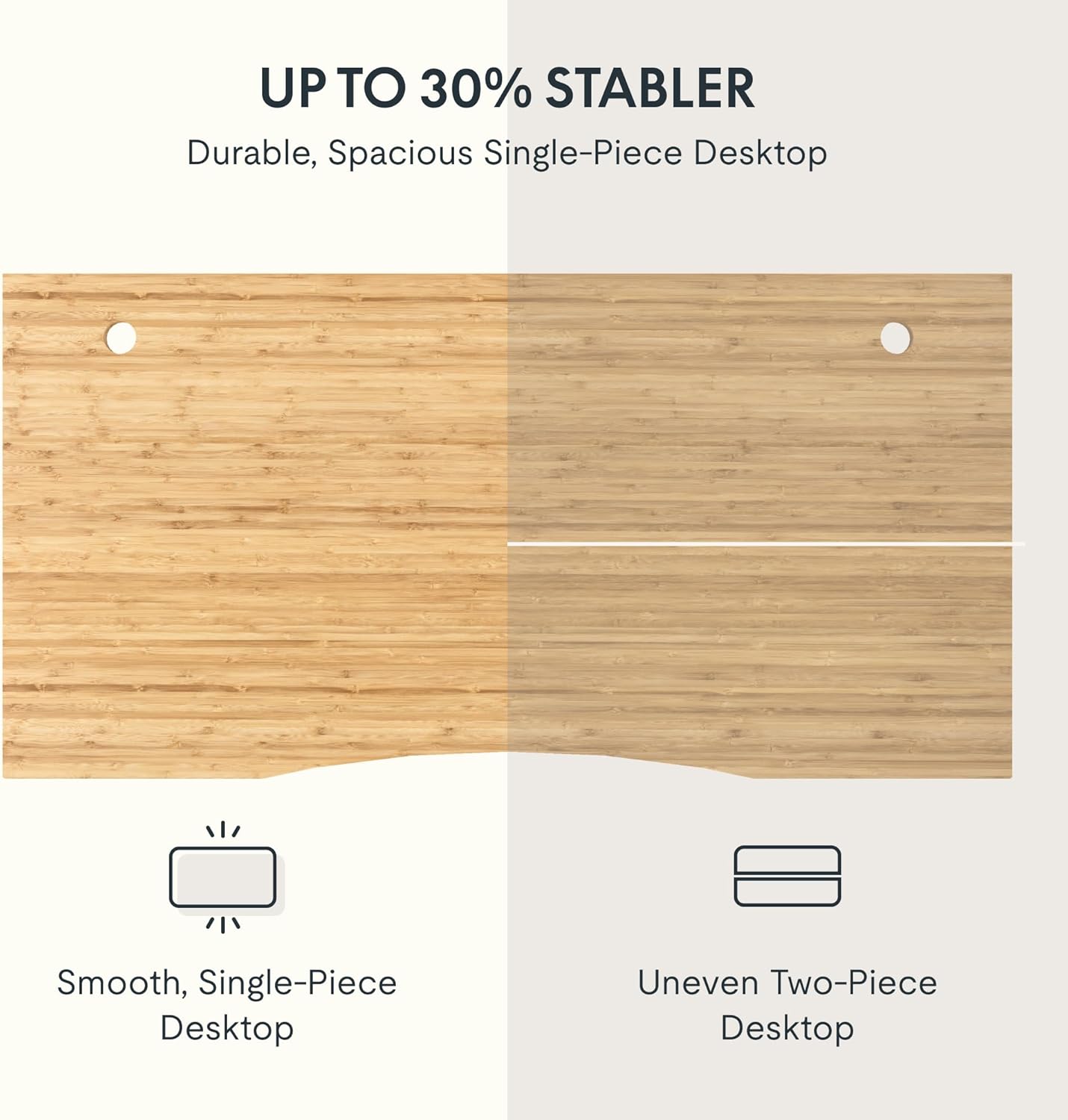 - AMPLE WHOLE-PIECE DESKTOP: With its whole-piece 1” eco-friendly desktop, this standing desk provides plenty of room for your computer setup, documents, and accessories, creating a well-organized and productive work environment. Due to hand measurements, desktop dimensions may vary slightly by 0 to 1”.