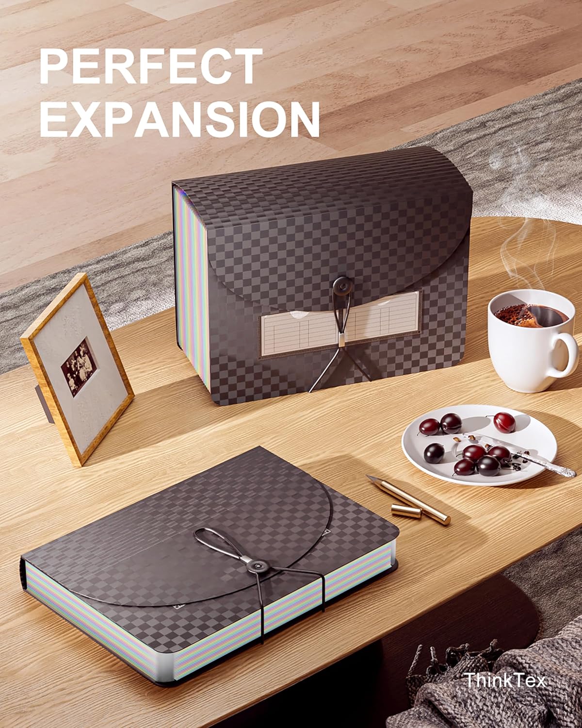 - MONTHLY BILLS ORGANIZER - ThinkTex 26 pockets accordion file organizer, top and bottom both expandable, A-Z multi-colored tabs, for letter/A4 size