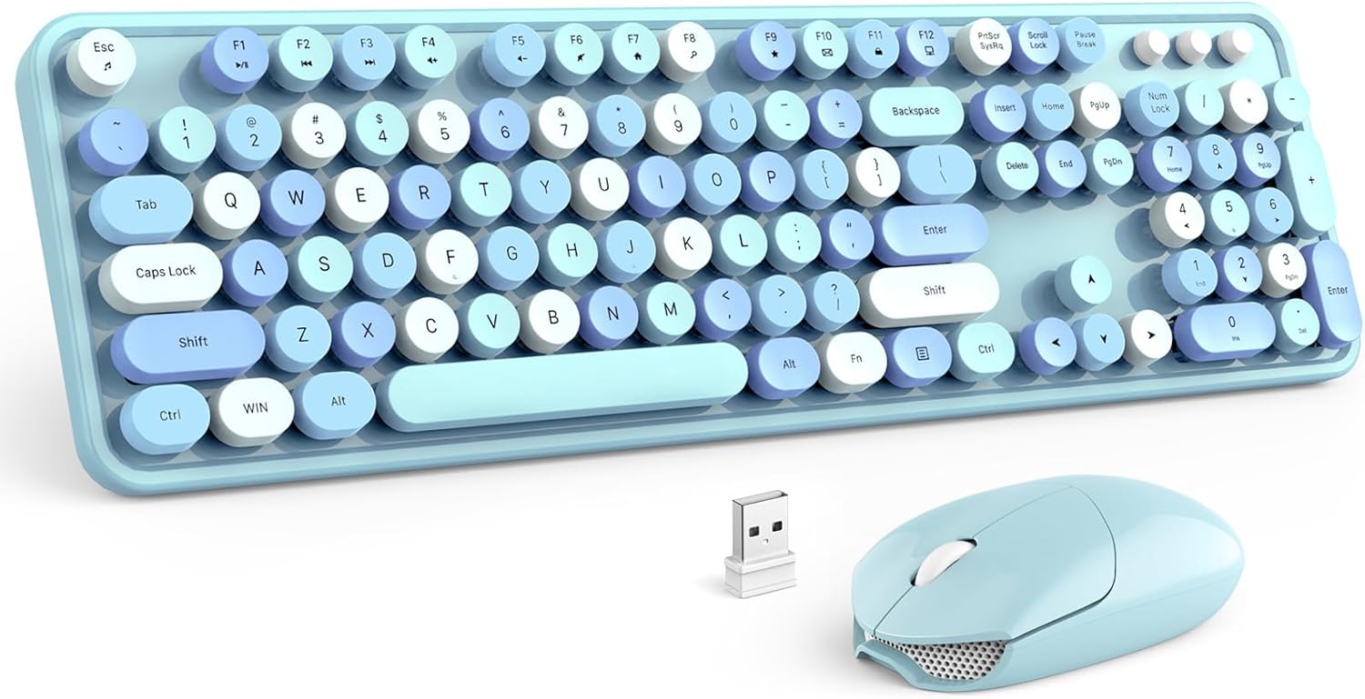 MOFII Wireless Keyboard and Mouse Combo, Blue Colorful Round Key Typewriter Keyboards, 2.4GHz Full Size Keyboard Computer Mice, USB Receiver Plug and Play, for Laptop, PC, Chromebook, Smart TV