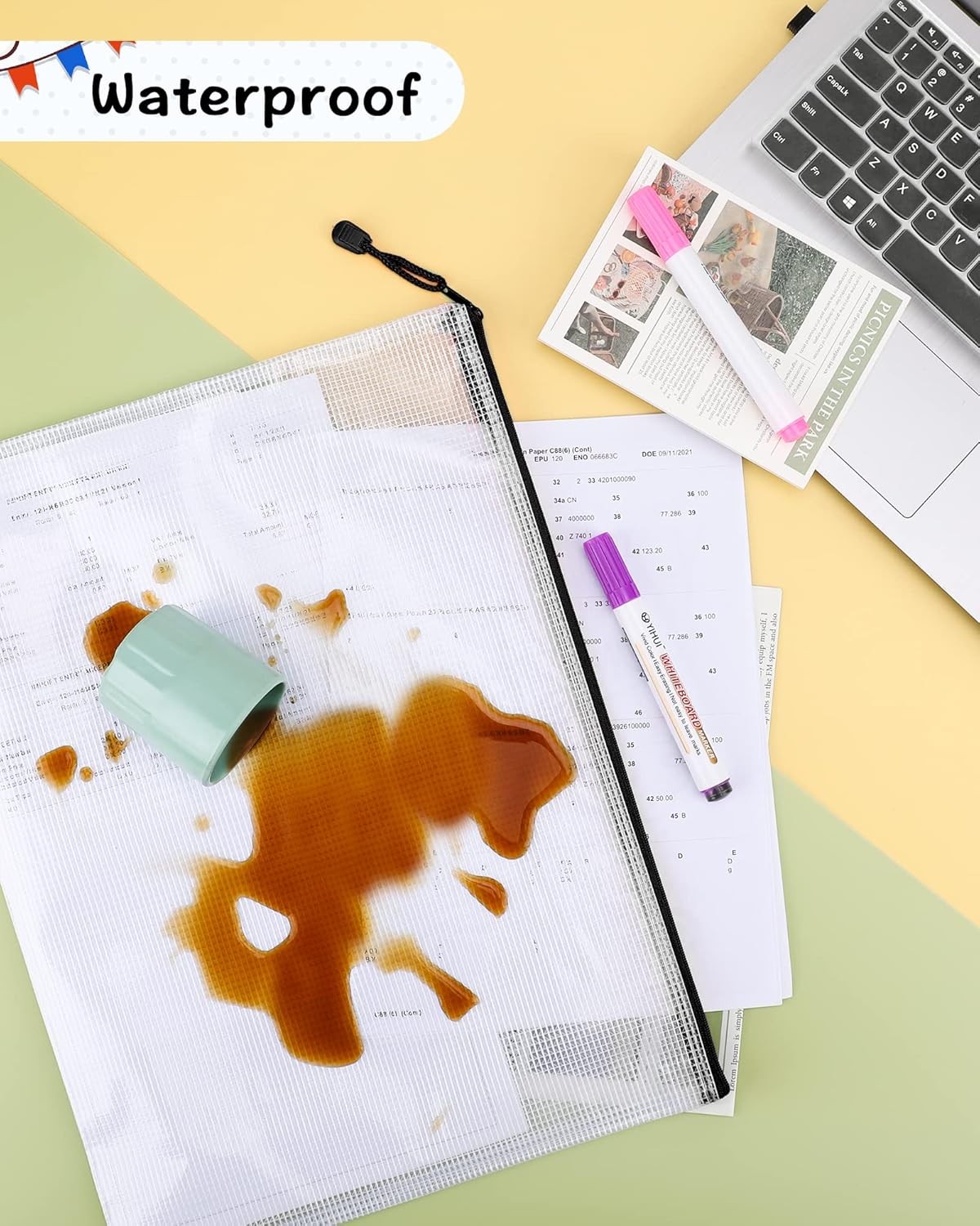 - Waterproof and Translucent: The waterproof and semi-transparent material makes the bag clear enough to identify items the item and yet can't see things in detail for privacy. Also easy to wipe down coffee drops or dirt