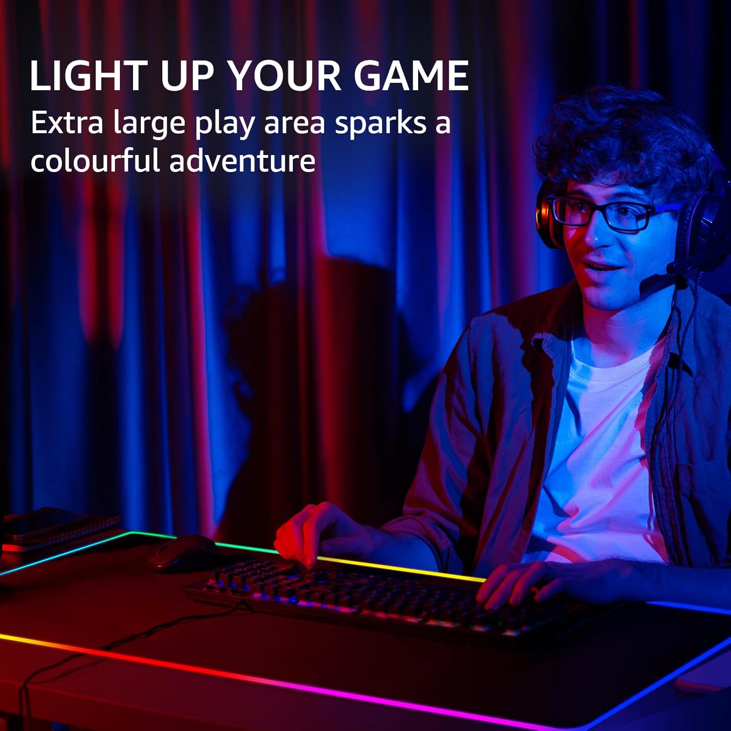 KTRIO RGB Large Gaming Mouse Pad with Stitched Edges, LED Extended Mousepad with Superior Micro-Weave Cloth, Non-Slip Base, Water Resist Keyboard Pad, Desk Pad for Gamer, Office & Home, 35.4 x 15.7 in