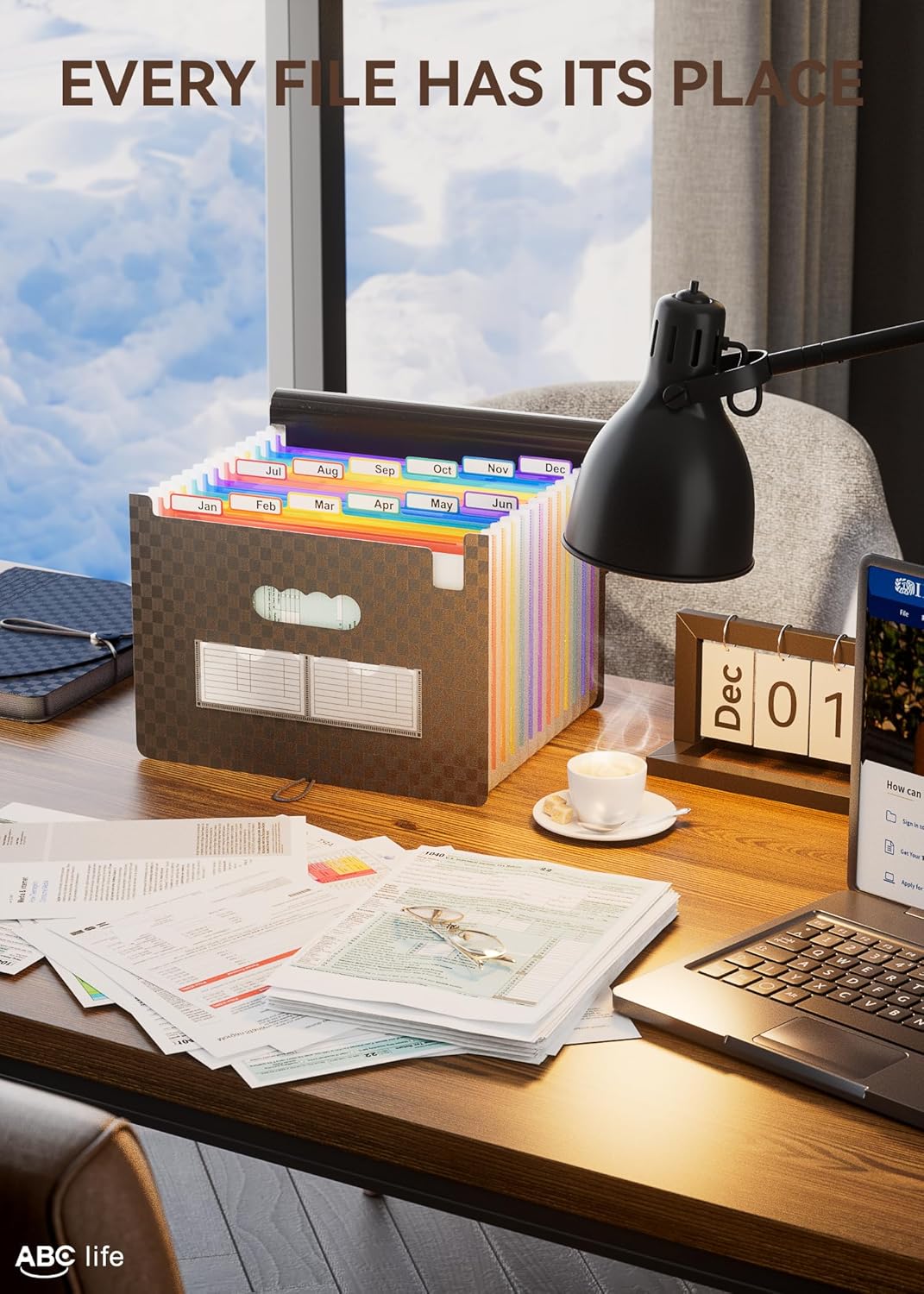 - ✅【12 POCKETS MONTHLY FILE ORGANIZER】ABC life 12 pockets Accordian File Organizer suitable for filing tax and storing important family documents. Product size is 13 "x 9.4"x 14", which can be used to store plenty of Letter/A4 size files.