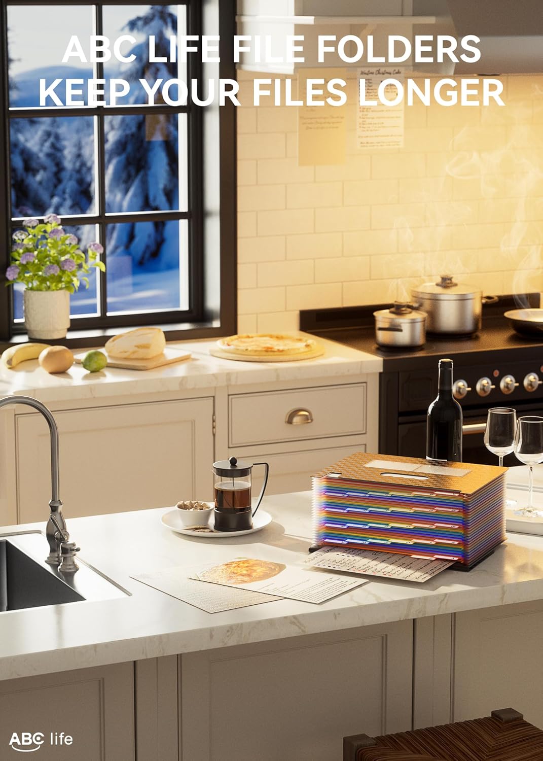 - ✅【26 POCKETS MONTHLY FILE ORGANIZER】ABC life 26 pockets Accordian File Organizer suitable for filing tax and storing important family documents. Product size is 13 "x 9.4"x 28", which can be used to store plenty of Letter/A4 size files.
