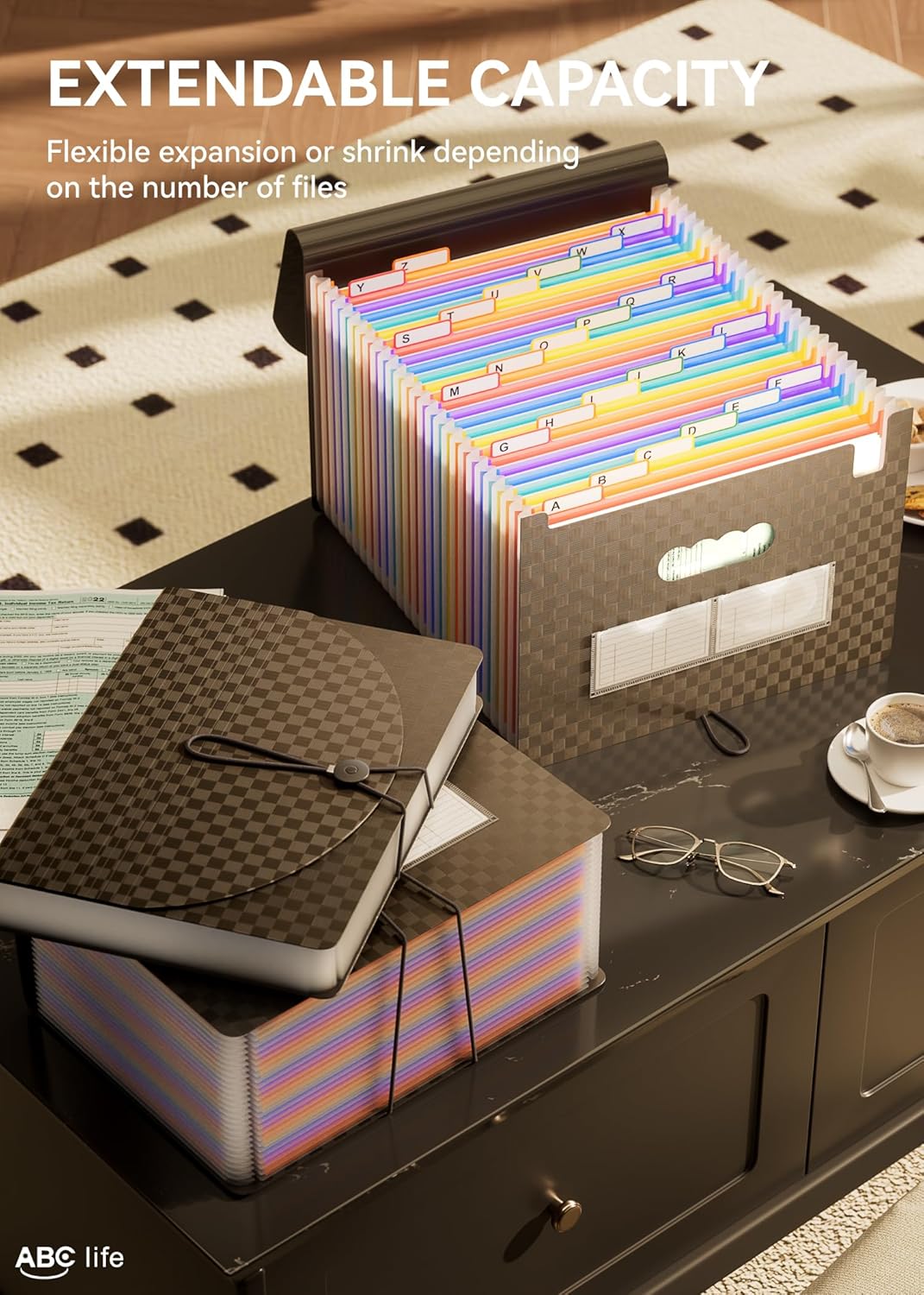 ABC life 26 Pockets Accordion File Organizer, Expanding File Folders, Portable Monthly Bill Receipt Organizer with Colorful A-Z Tabs, Desktop Folders Letter A4 Paper Document Storage for Home Office
