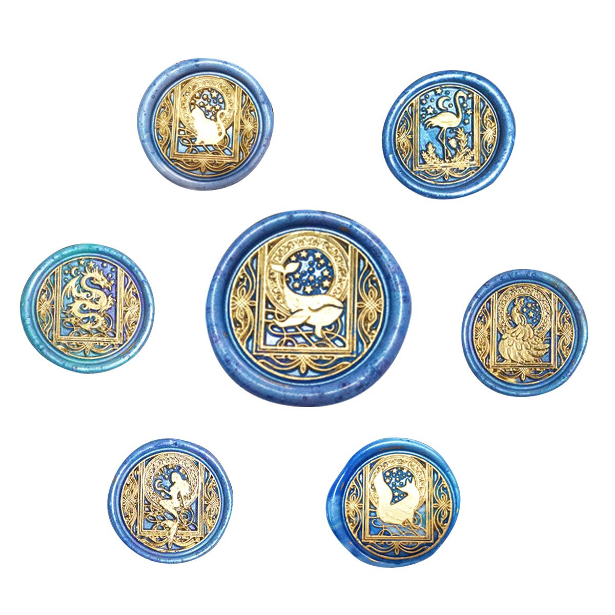 - PACKAGE INCLUDE: 1 * Wooden hilt, 7 * Moon Starry Sky Animals Wax Seal Stamps.