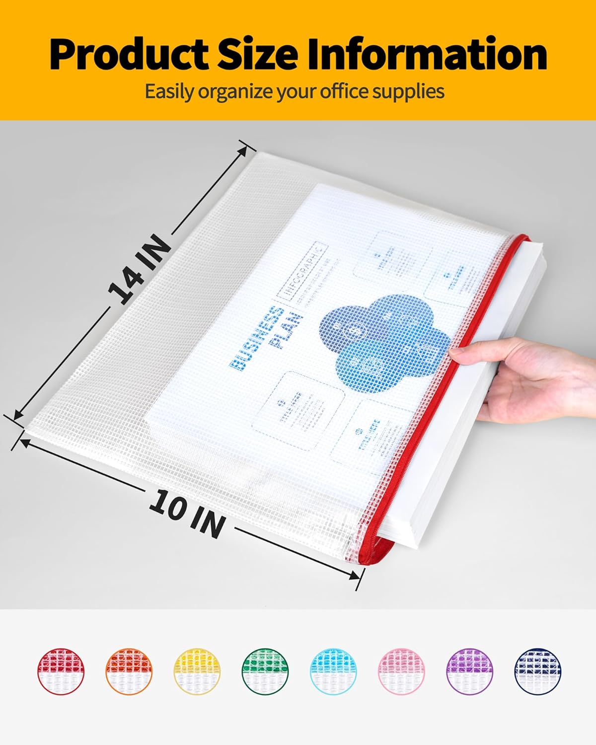 - PACKAGE CONTAINS: You will get a set of 24 Packs 10x14 inches multi-colored plastic zipper pouches for the most paper size of letter-size prints or smaller document storage. It can help you organize your miscellaneous items to meet your daily life and work. Manufacturer recommended age 3 years and up.