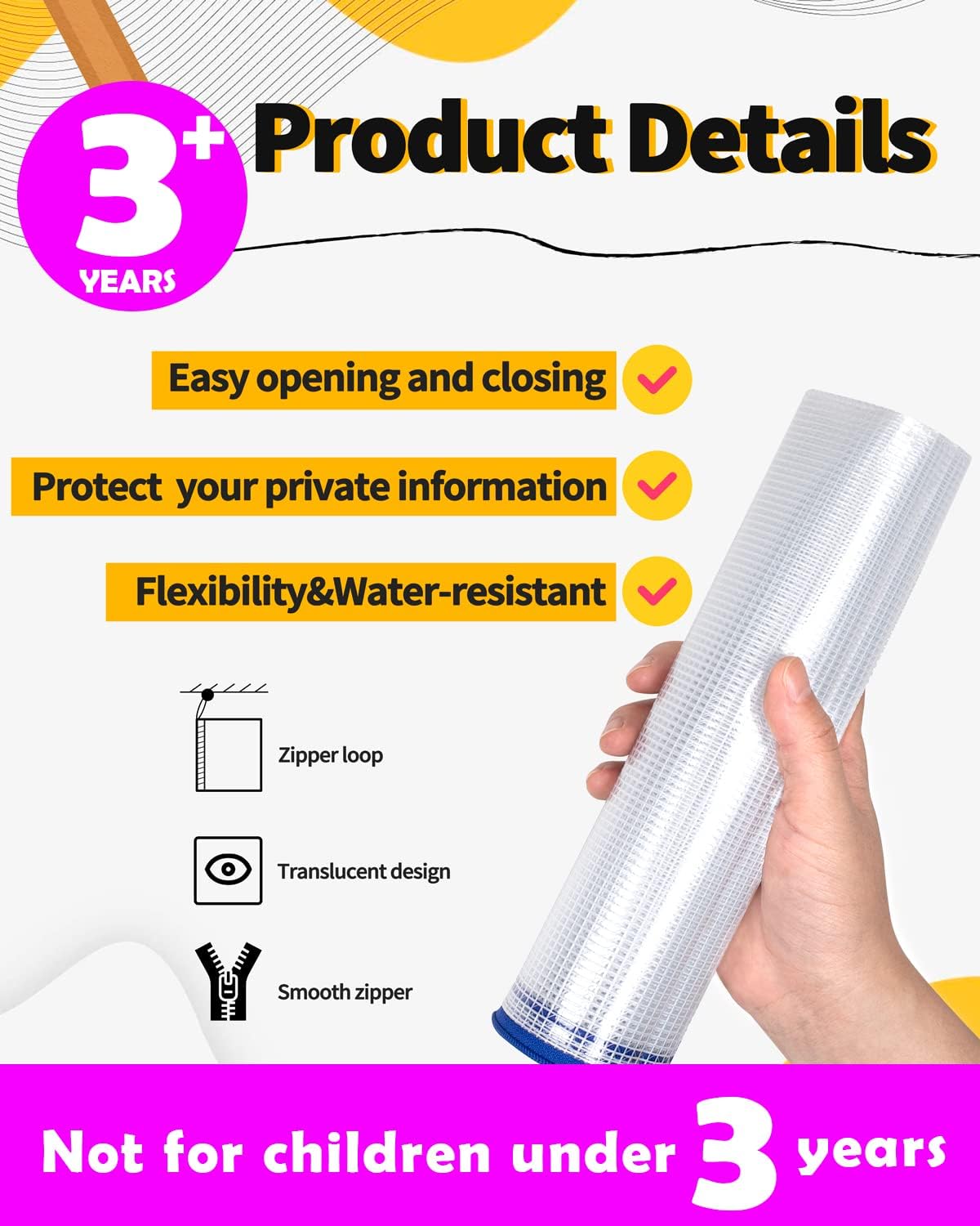 - DURABLE & PORTABLE: SUNEE zipper file bags are made of thick vinyl material, water-resistant, moisture-resistant. Each metal zipper is equipped with a rope loop, which is strong and durable. It can be used as a hanging ring and ready to hang