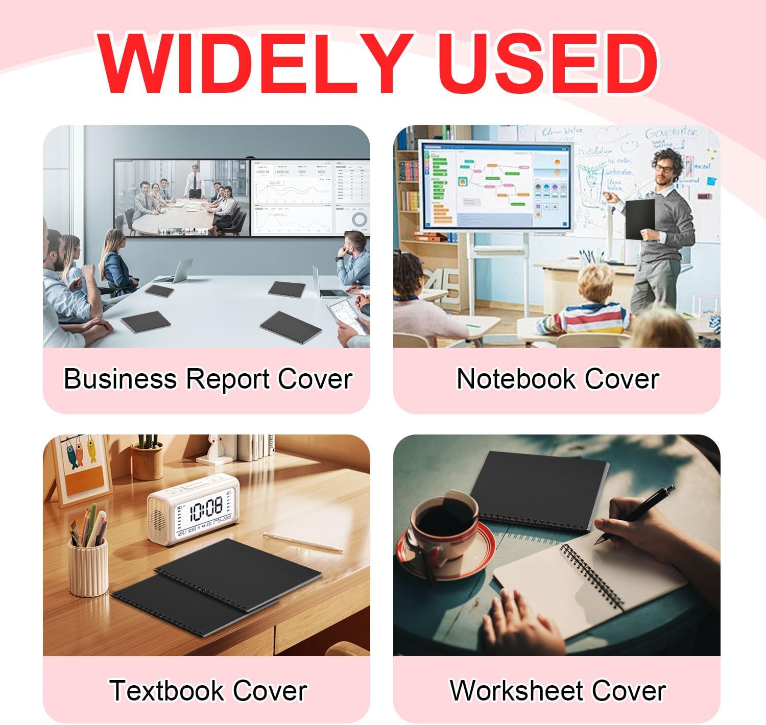 - Size: Sand-Textured Poly cover is 8-1/2 x 11 Inches, 100 pack, Black, Square corners