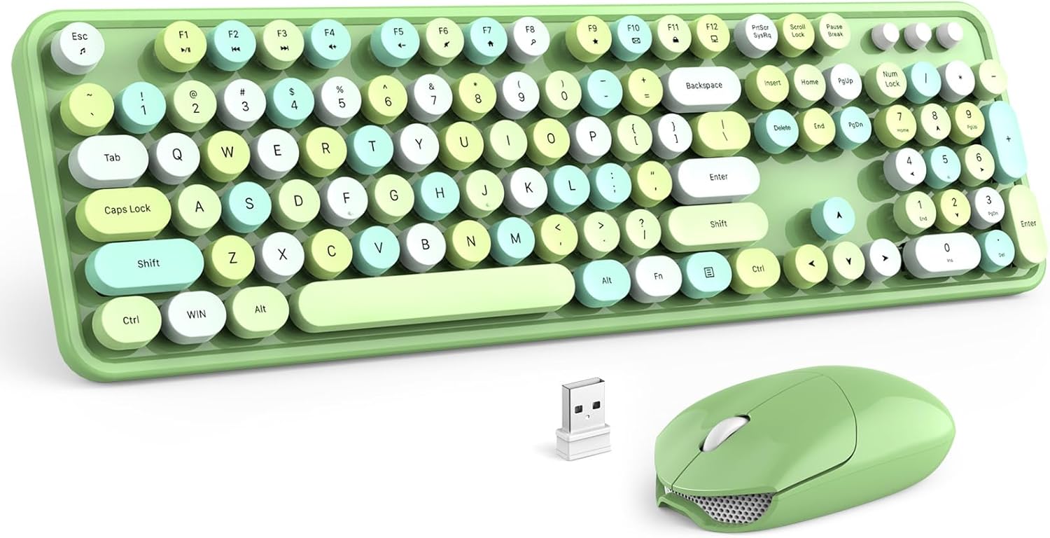MOFII Wireless Keyboard and Mouse Combo, Retro Green 2.4GHz Full Size Colorful Keyboards with Round Keycaps, Cute Wireless Mouse for Laptop, PC, Chromebook, Smart TV, Computer, Windows