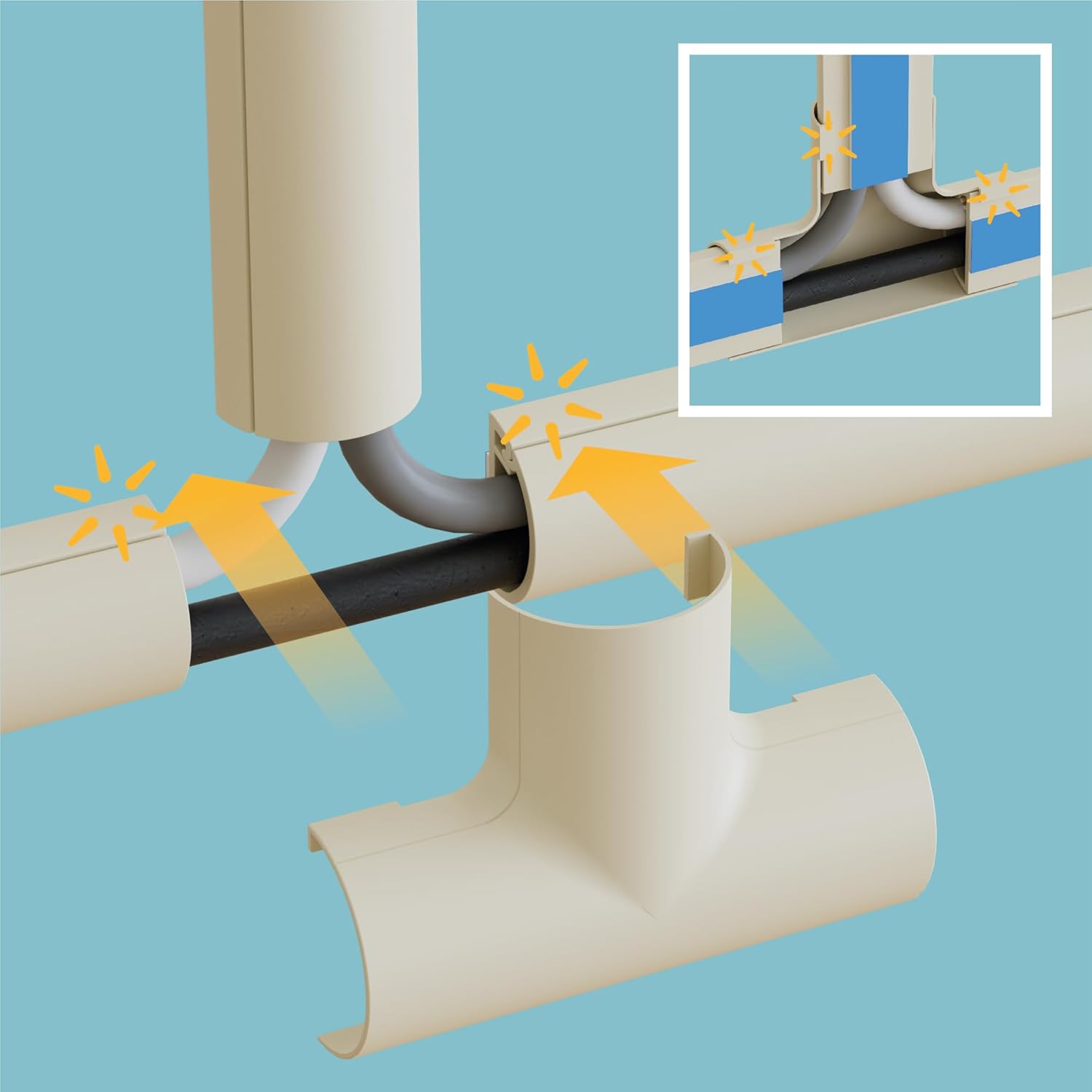 - Bends and Tees have rear grip tabs for simple clip-over fitting enabling easy installations and forgiving any imprecise cuts or measurements.
