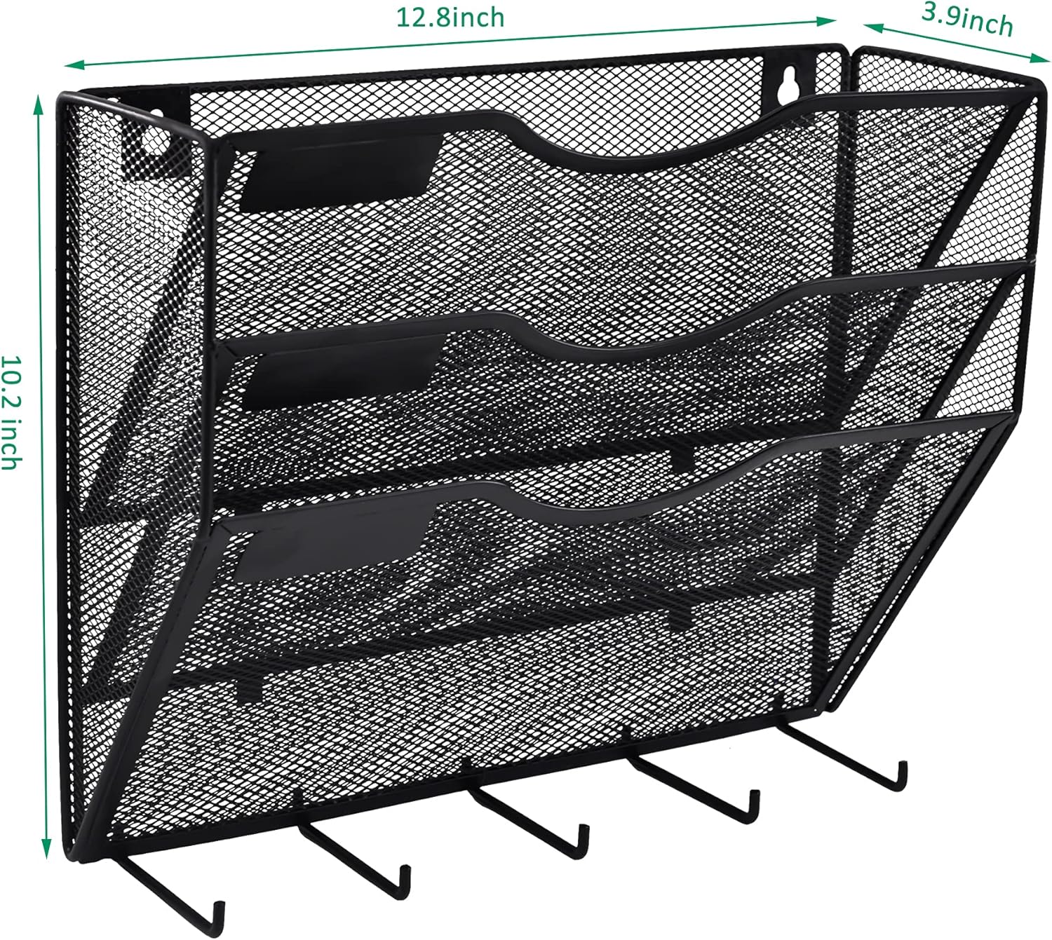 - Product Size & Material: 10.23 x 12.8 x 3.9 inch. The 3-section wall mounting racks is made of high-quality metal material, elegant and contemporary mesh construction with stable powder coat finish that take full advantage of your vertical space and keep your desk clean