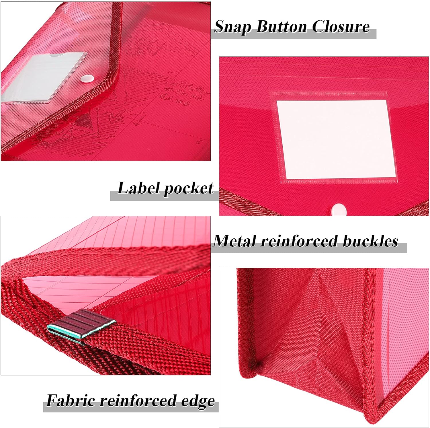 - Snap button closure and label pocket: plastic folders for documents are designed with snap button and label pocket; The plastic envelopes with snap closure secure the important files, folders with pocket for labels to distinguish your files easily
