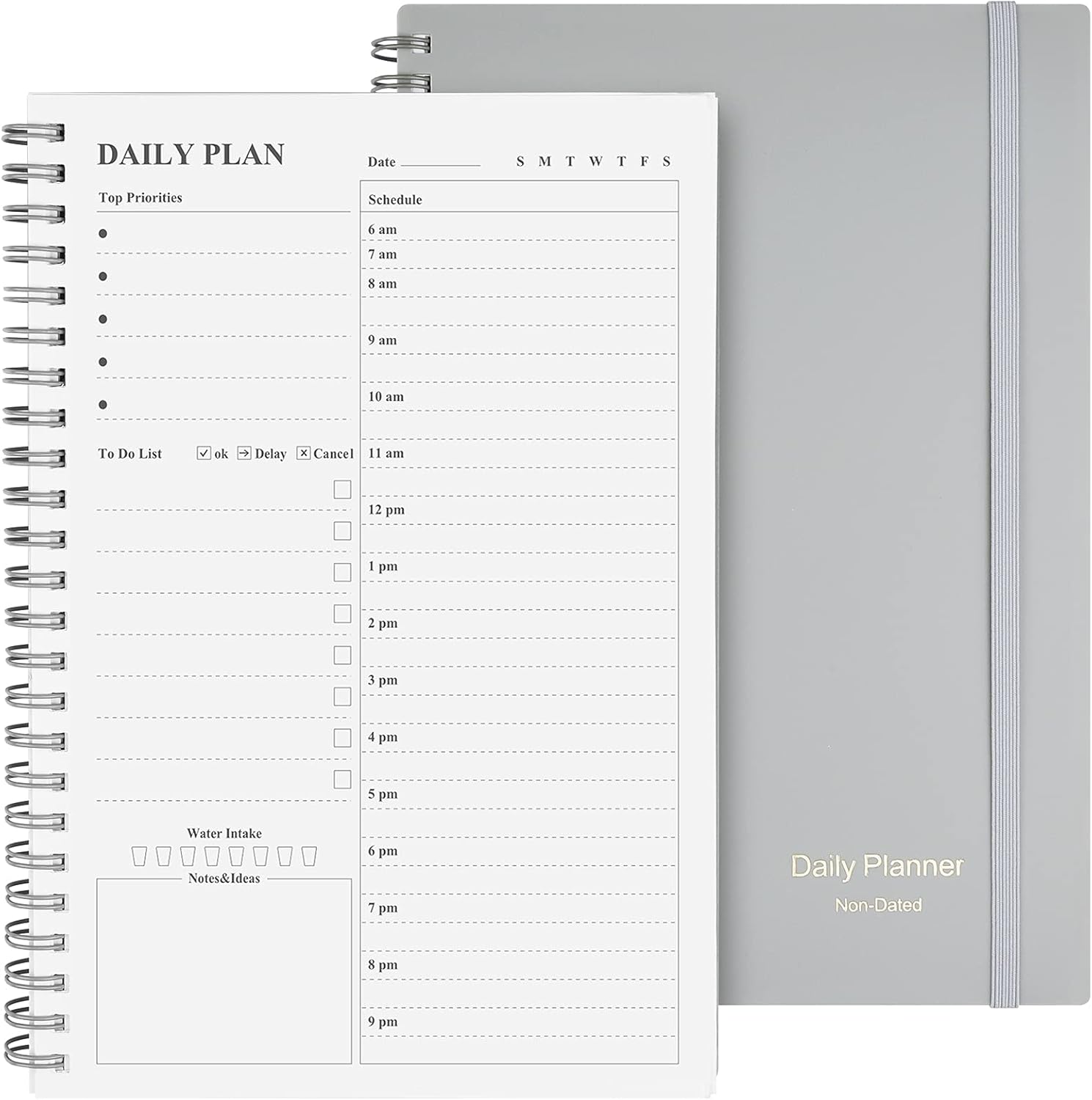 Daily Planner Undated, Asten To Do List Notebook Hourly Schedules Spiral Appointment Planner for Men and Women,PVC Hardcover,Elastic Closure, Inner Pocket 8.3" x 5.8" (Gray)
