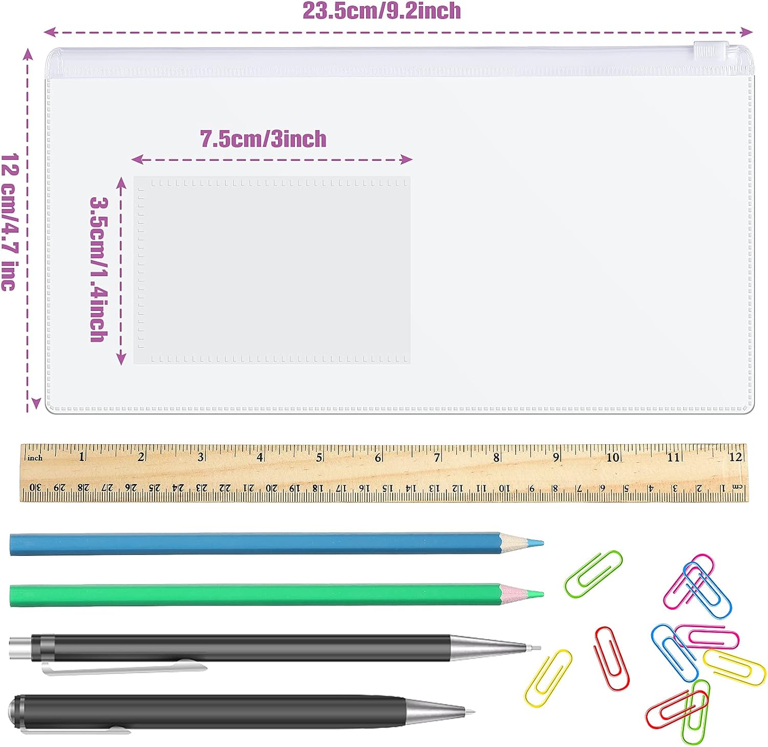 Marspark 100 Pieces Clear Pencil Case Zipper Envelope Bulk with Label Pocket Clear Plastic Envelopes with Zippered, A6 Pencil Bags for Cash, School Office Supplies, 9.2 x 4.7 Inches(White)
