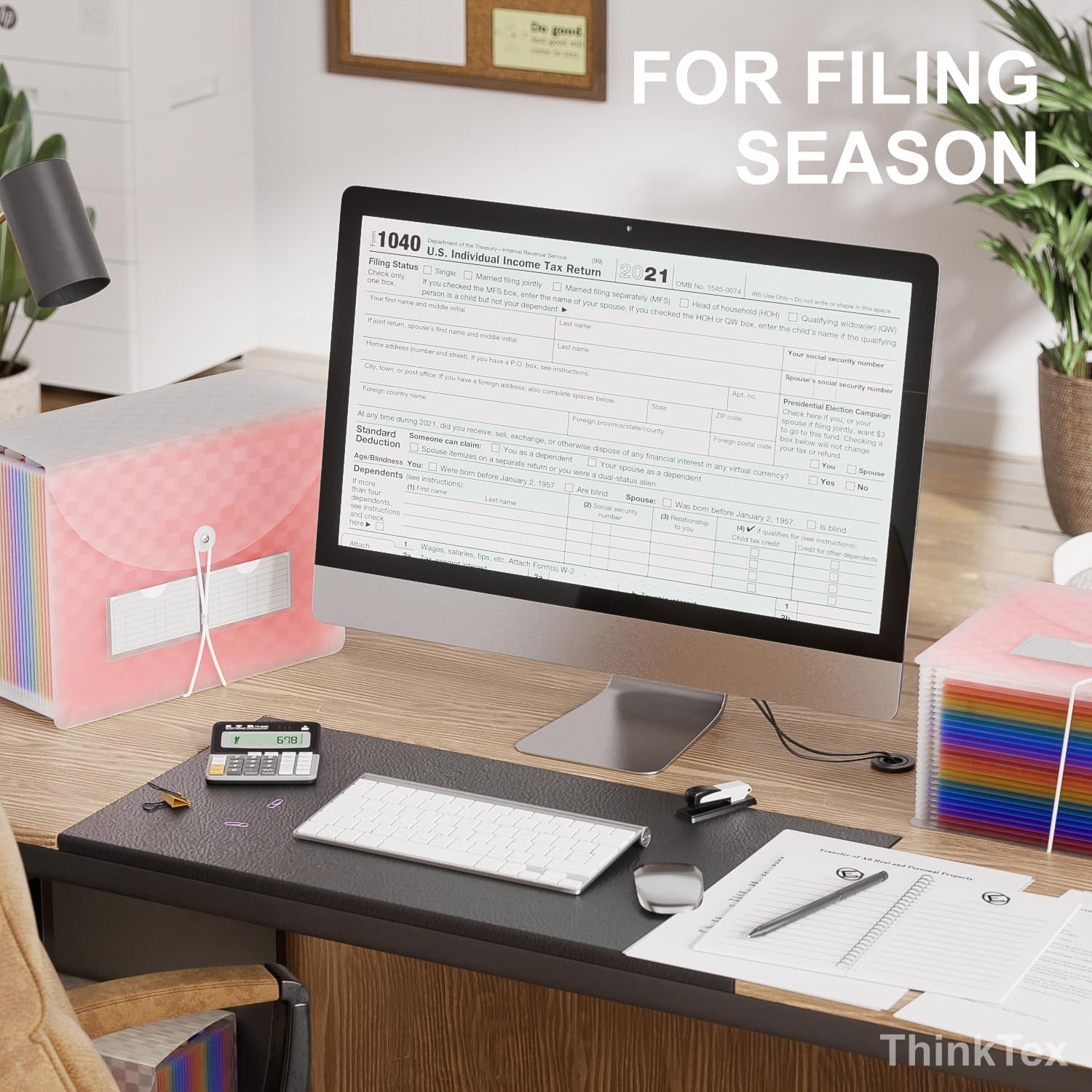 ThinkTex Accordion File Organizer, 26 Pockets Expanding File Folders, Monthly Bill Receipt Documents Organizer, A-Z Colorful Tabs, Letter/A4 Size - Pink