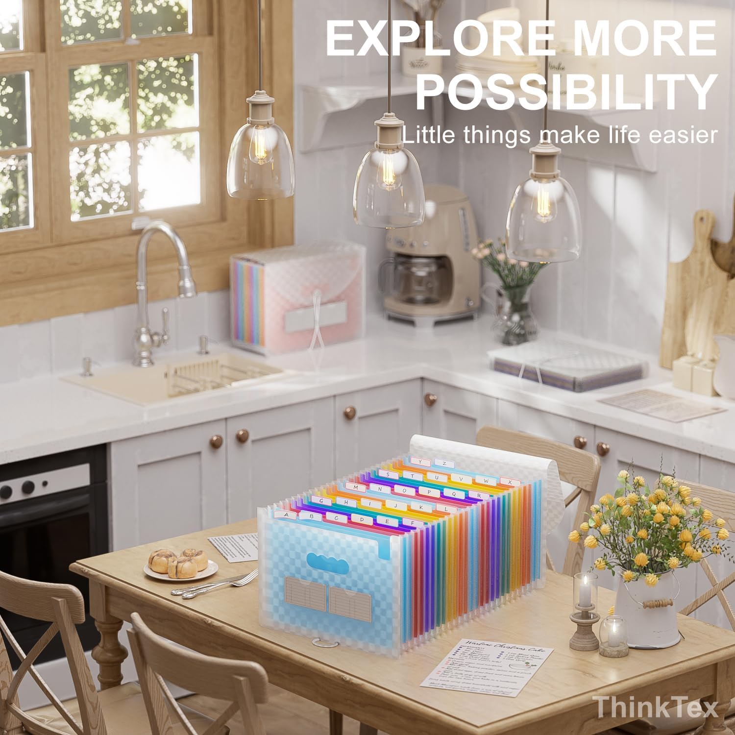 - MONTHLY BILLS ORGANIZER - ThinkTex 26 pockets accordion file organizer, top and bottom both expandable, A-Z multi-colored tabs, for letter/A4 size