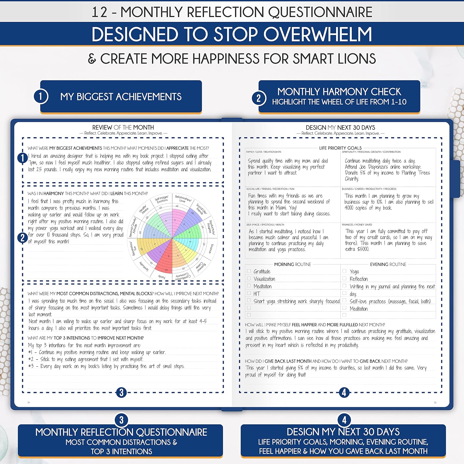 Life Planner - Undated Daily, Weekly & Monthly Planner with Budget Section | A 12 Month Journey to Increase Productivity & Happiness | Life Organizer & Gratitude Journal - Horizontal Format