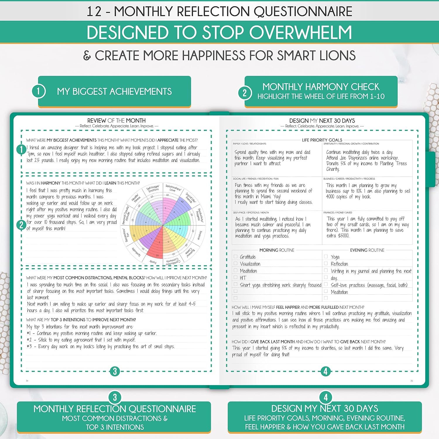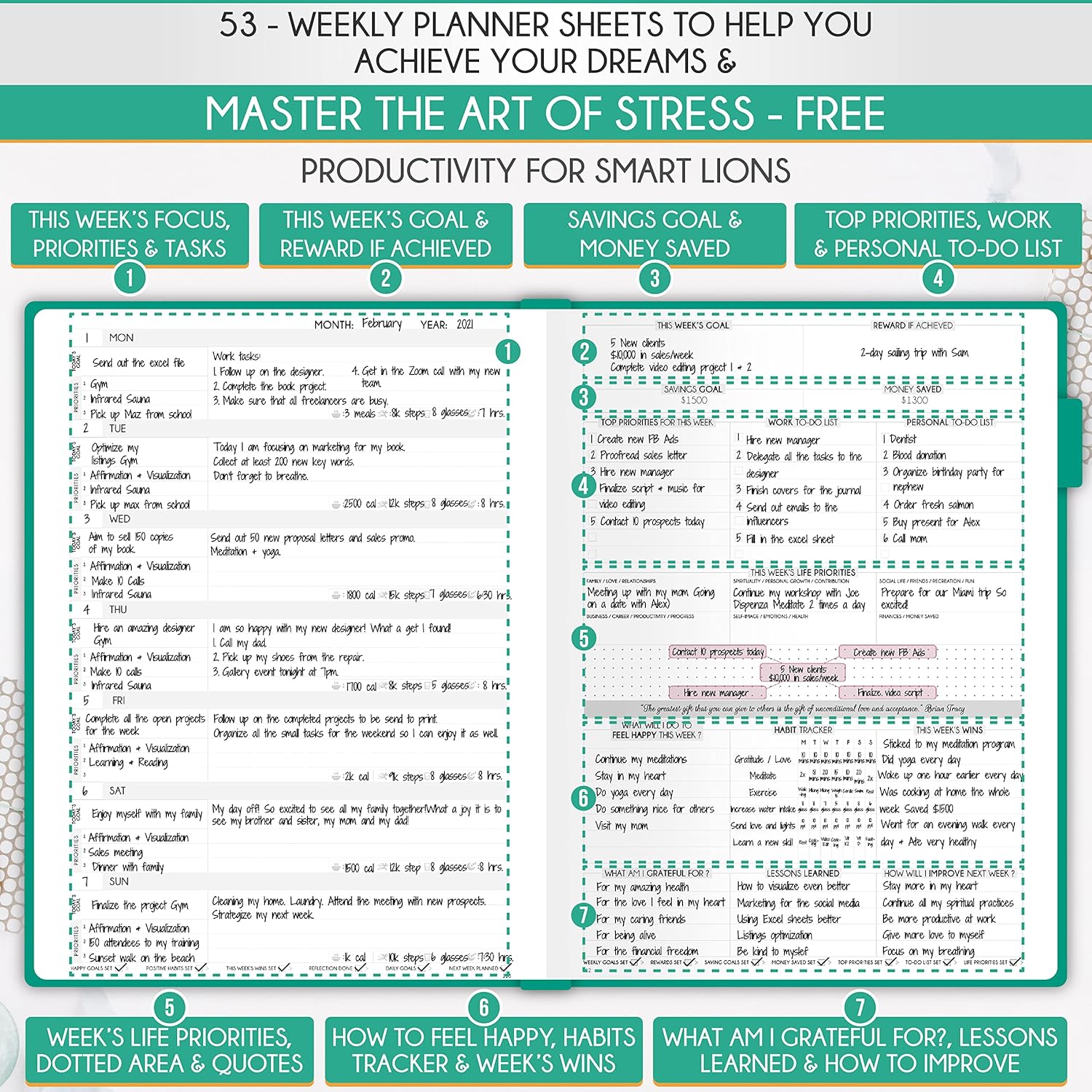 - SELF CARE PLANNER - This premium planner is undated and combines daily, weekly, and monthly planning features along with productivity, goal setting, business organization, to-do lists, notebook functionality, and gratitude journaling all in one. It includes goal-setting guidance that teaches you how to apply the law of attraction and vibration principles to become the best possible version of yourself on a mental, physical, and interpersonal level, thereby increasing productivity and happiness.