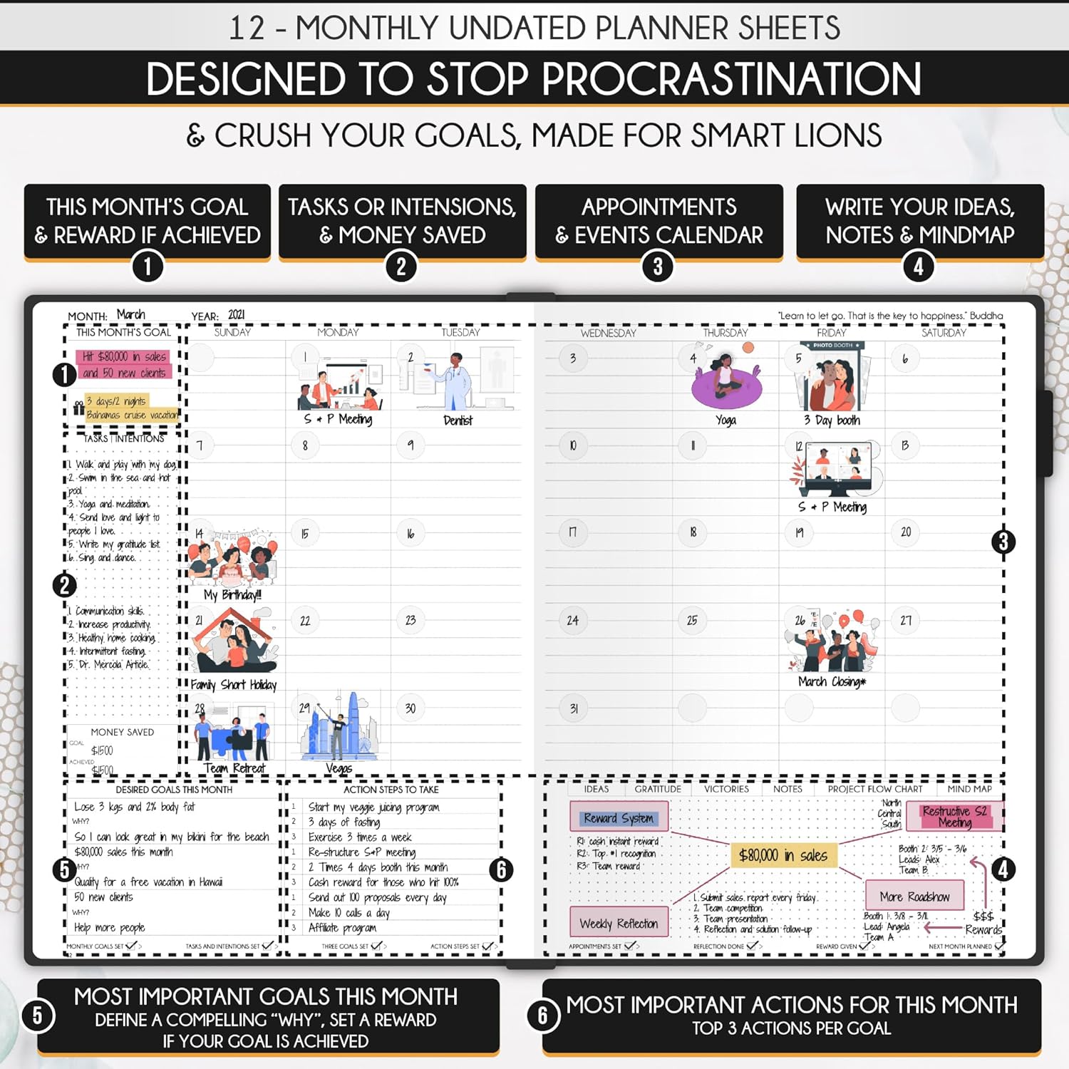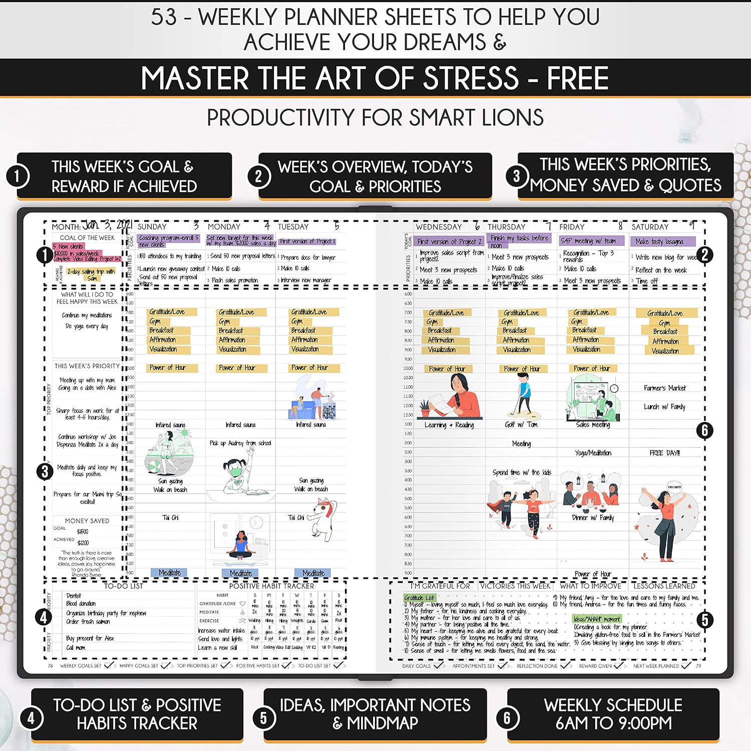 - GOAL SETTING PLANNER - Learn how to set big goals, be happy, and efficiently manage your time by adopting the same tactics used by millionaires to set and achieve them