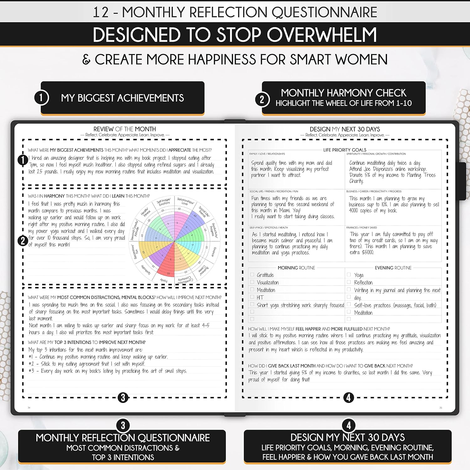 - UNDATED PLANNER - Luxurious and high-quality, suited for women, and ideal for entrepreneurs, professionals, college students, and anybody with a burning desire to achieve their objectives. No-questions-asked money-back guarantee