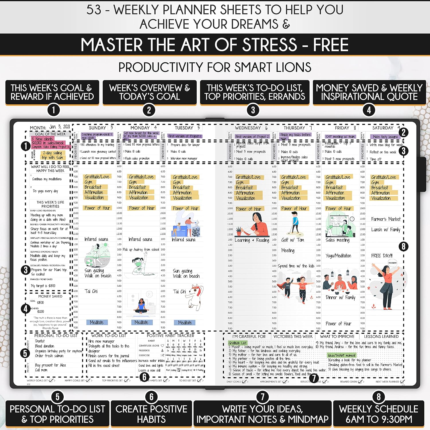 - GOAL SETTING PLANNER - Learn how to set big goals, be happy, and efficiently manage your time by adopting the same tactics used by millionaires to set and achieve them