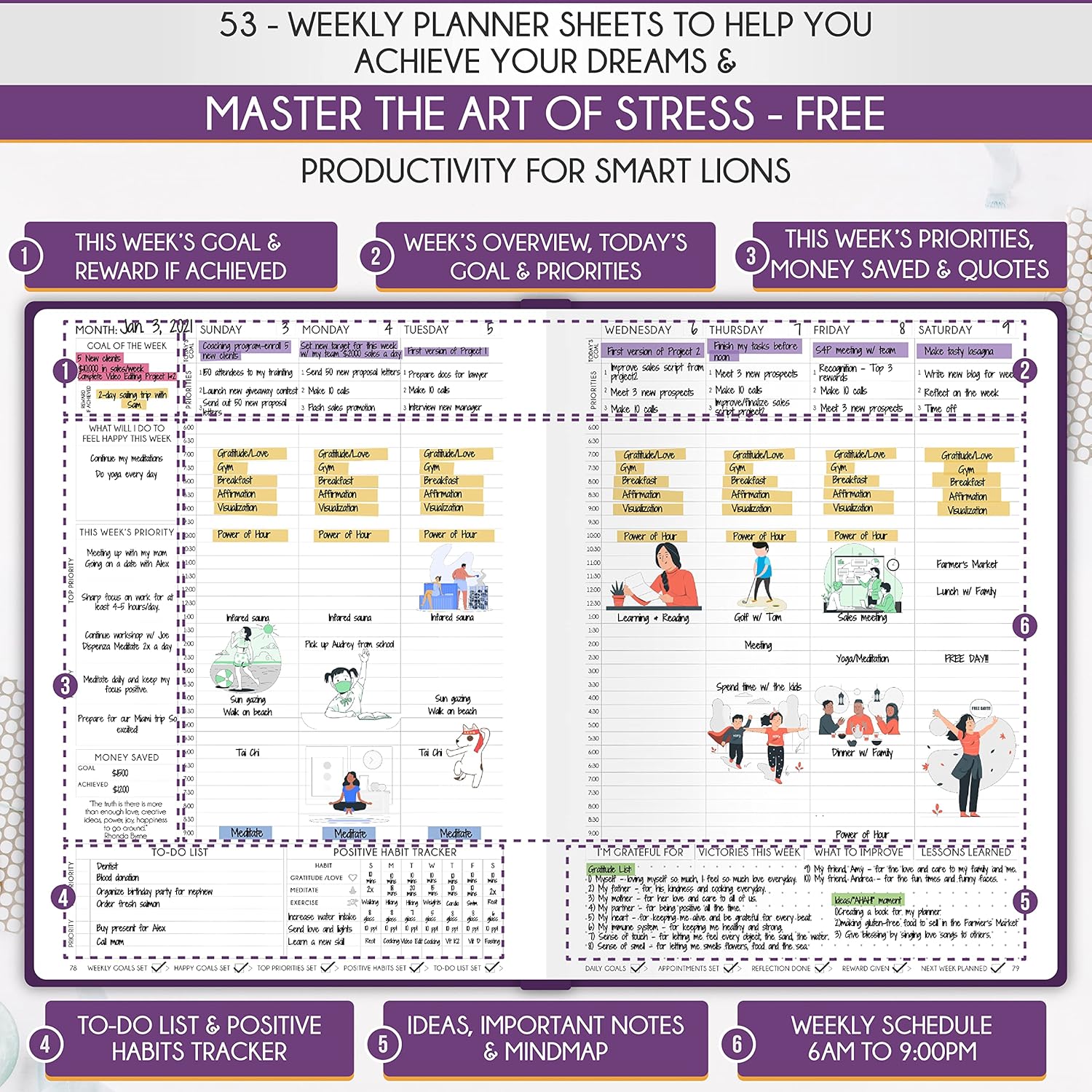 - GOAL SETTING PLANNER - Learn how to set big goals, be happy, and efficiently manage your time by adopting the same tactics used by millionaires to set and achieve them