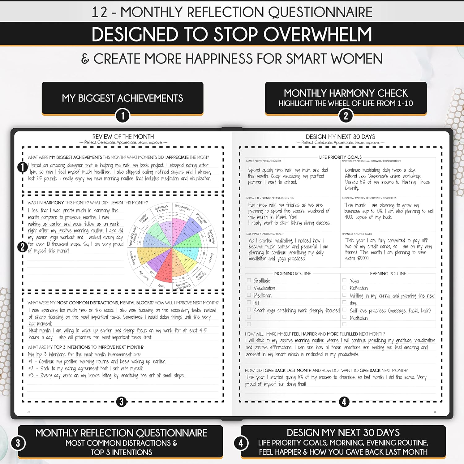 - UNDATED PLANNER - Luxurious and high-quality, suited for women, and ideal for entrepreneurs, professionals, college students, and anybody with a burning desire to achieve their objectives. No-questions-asked money-back guarantee