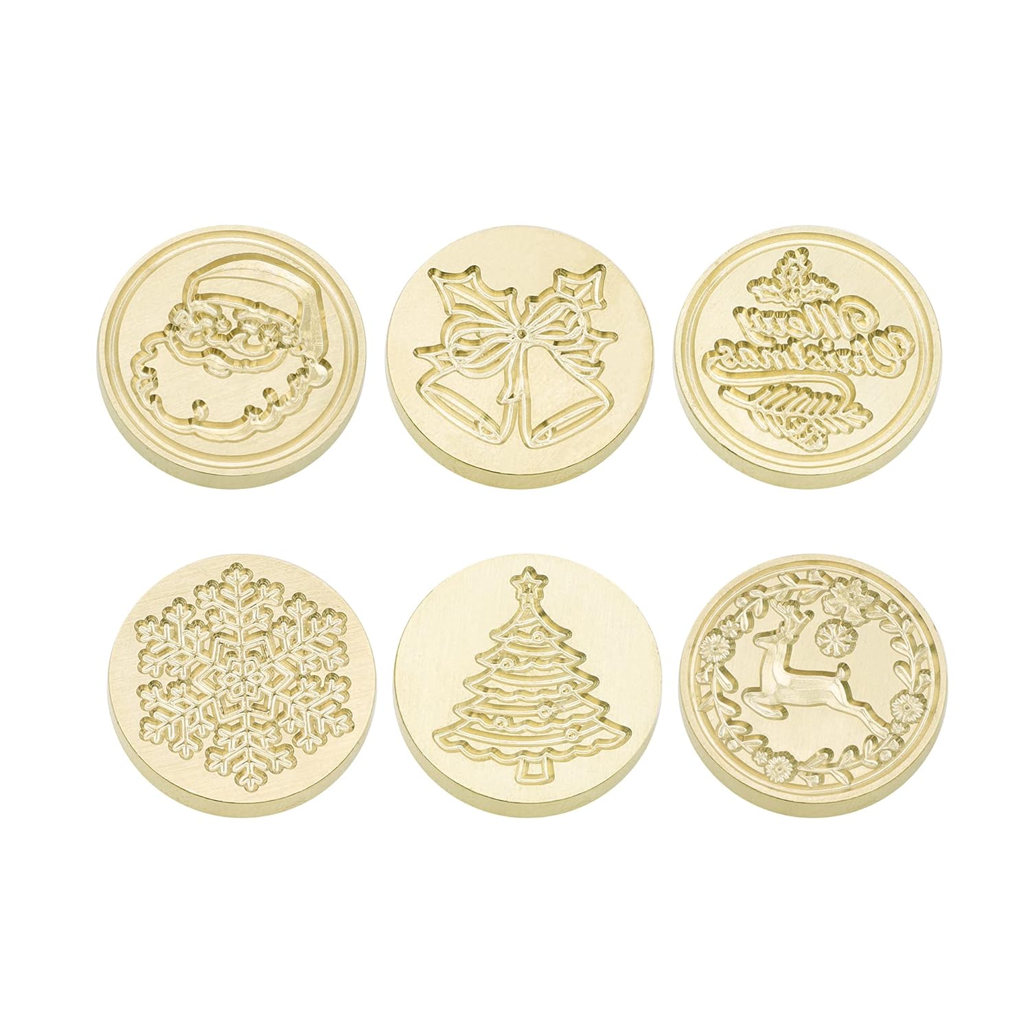 SWANGSA Wax Seal Stamp Set, Vintage 6 Pieces Christmas Sealing Wax Stamp Heads with 1 Wooden Handle for Christmas Gifts Party Invitations Cards (Christmas Set)
