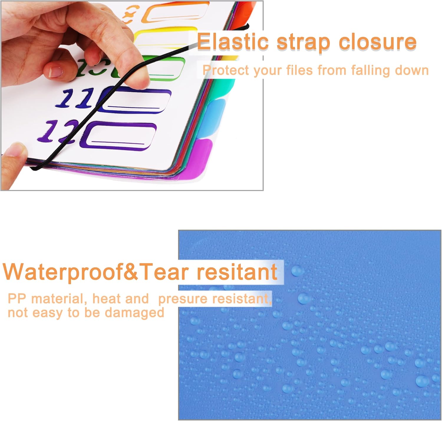 - ★Double Protection: The upper and lower parts of the file folder are secured by two elastic straps that prevent paper from falling out.